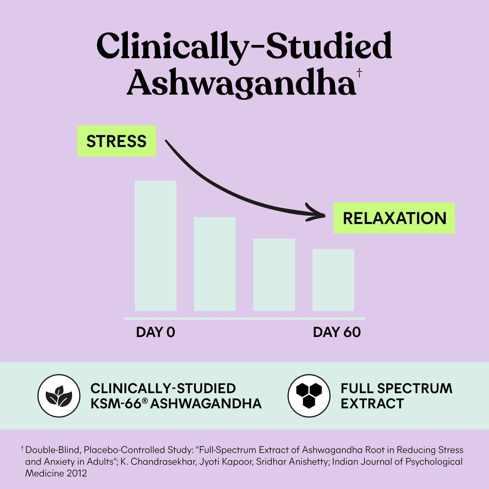 CLINICALLY TESTED: KSM-66 Ashwagandha has been evaluated in 24 “Gold Standard” clinical trials and shown to reduce occasional stress, support healthy cortisol (stress hormone) levels, and reduce stress-related food cravings.*