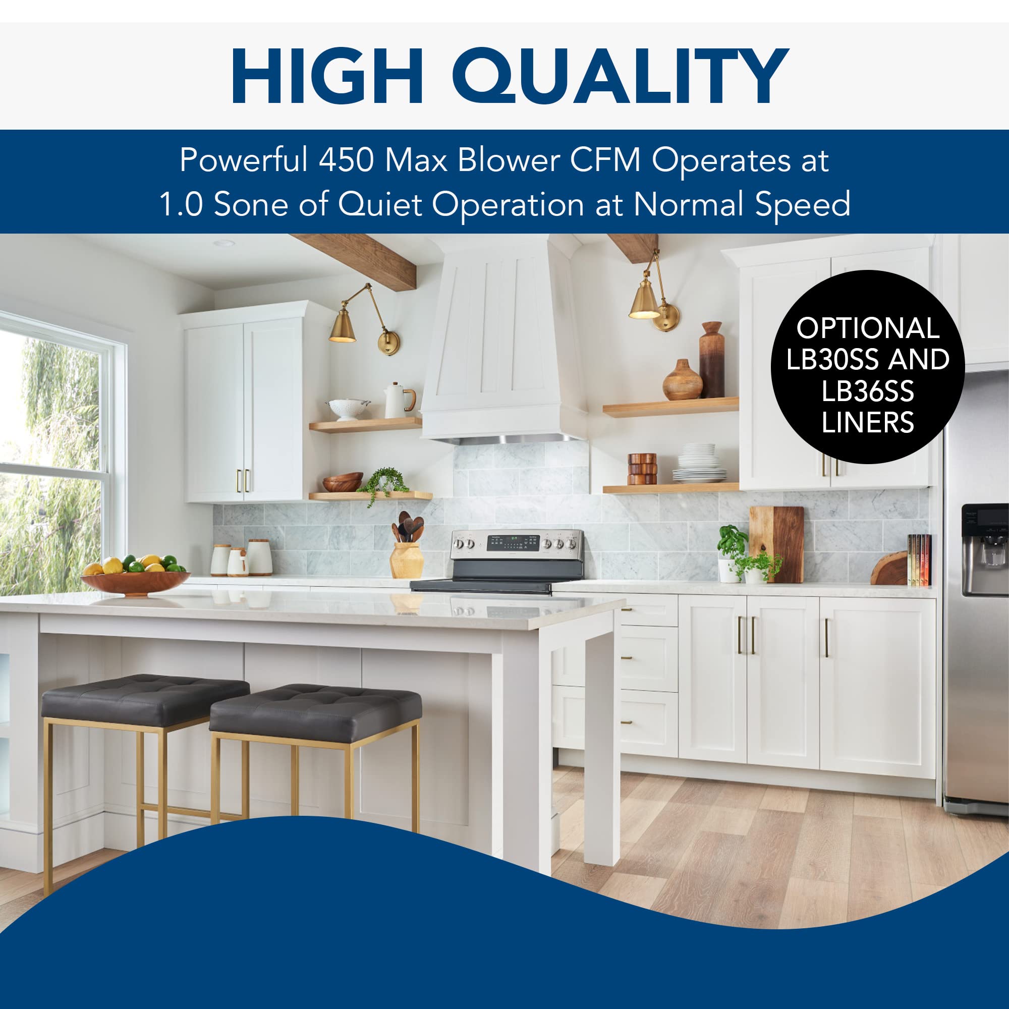 VOICE CONTROL: This Energy Star certified insert features voice-activated commands via wifi for hands-free operation that allows control of the 4-speed blower at 450 Max CFM to effectively remove smoke, odor, and more from your space.