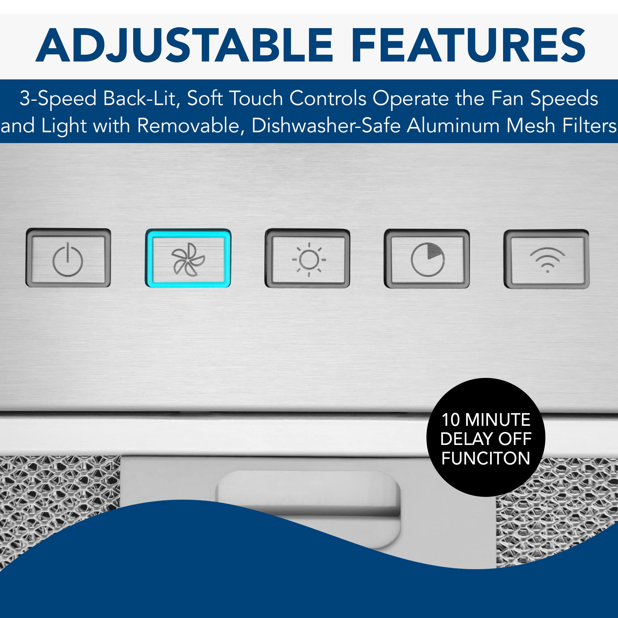 CONVIENENT FEATURES: 2-level bright LED lighting provides a better view of your cooktop, no matter the time of day, and dishwasher-safe filters and stainless steel finish will not discolor, simplifying the cleaning process