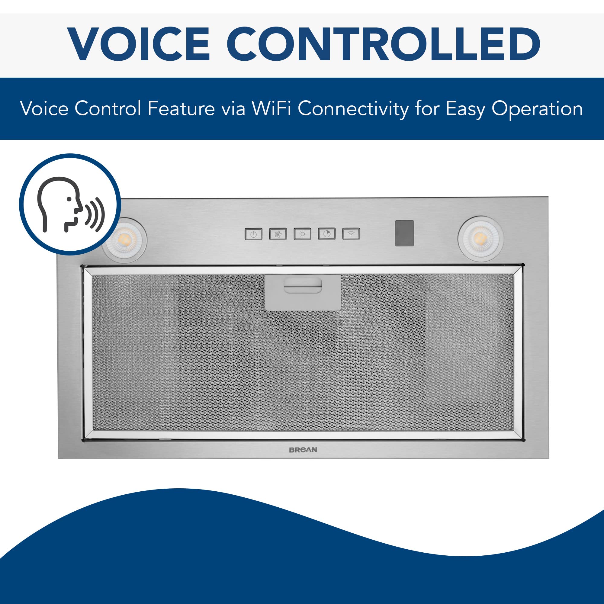Advanced Wi-Fi capabilities for voice commands make it easier than ever for you to improve the air quality in your kitchen hands-free with the Broan-NuTone Voice Control Custom Range Hood Insert. Perfect for custom kitchen designs and streamlined cabinet installations, this 21-inch one-piece insert protects the bottom of your cabinetry and looks great doing it- the flush design and depth adjustment capability make this stainless steel insert suitable for any kitchen appearance. This hood insert comes with EZ1 clips, making solo installation less daunting both for professional and DIY installers, and Code Ready Technology (CRT) to automatically adjust the CFM and fan speed to meet make-up air codes where applicable. This HVI certified range hood insert includes a four-speed backlit touch control panel for convenience, when not using voice commands, and clears the air at a max blower speed of 450 CFM to remove smoke, grease, exhaust, and odor from your kitchen. Operating at a quiet 1 sone of noise, this Energy Star Certified insert is nearly silent, so you won't have to yell over the sound. This innovative insert will continue to clear polluted air from your kitchen even after you've finished cooking thanks to the 10 minute delay function. Featuring bright, 2-level LED lighting, this custom built-in range hood insert power pack makes evening cooking accessible and easy. The smooth, stainless steel surface and quick-release dishwasher-safe aluminum mesh filters allow for easier cleaning, and an optional non-duct filter kit (sold separately) eliminates the need for strenuous ductwork. This 11.44" x 21" x 10.56" insert is ADA compatible, and works in tandem with an optional remote wall control (sold separately).
