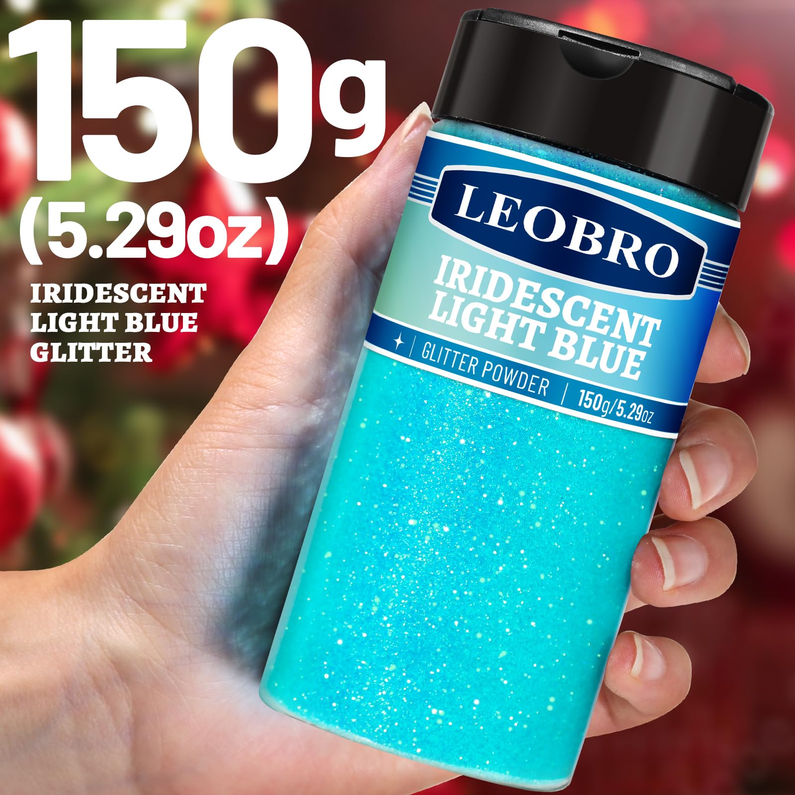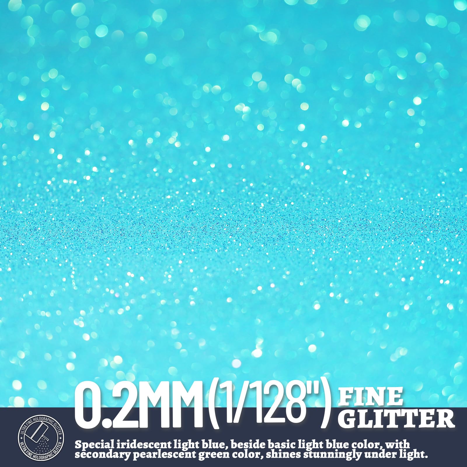 Bulk Iridescent Light Blue Glitter: Amazing iridescent light blue glitter, with secondary pearlescent green color, shines stunningly under light; 150/5.29oz, large amount, can support abundant DIY projects.