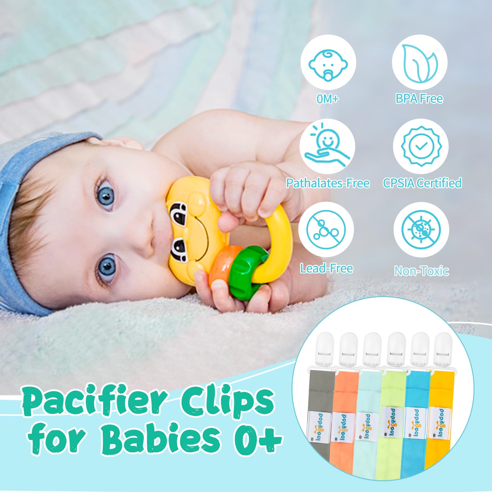 Babygoal Neutral Pacifier Clips, 6 Pack Paci Holder Clips for Boys and Girls Fits for Most Baby Pacifier, Binky Styles,Teethers and Toys 6PS10