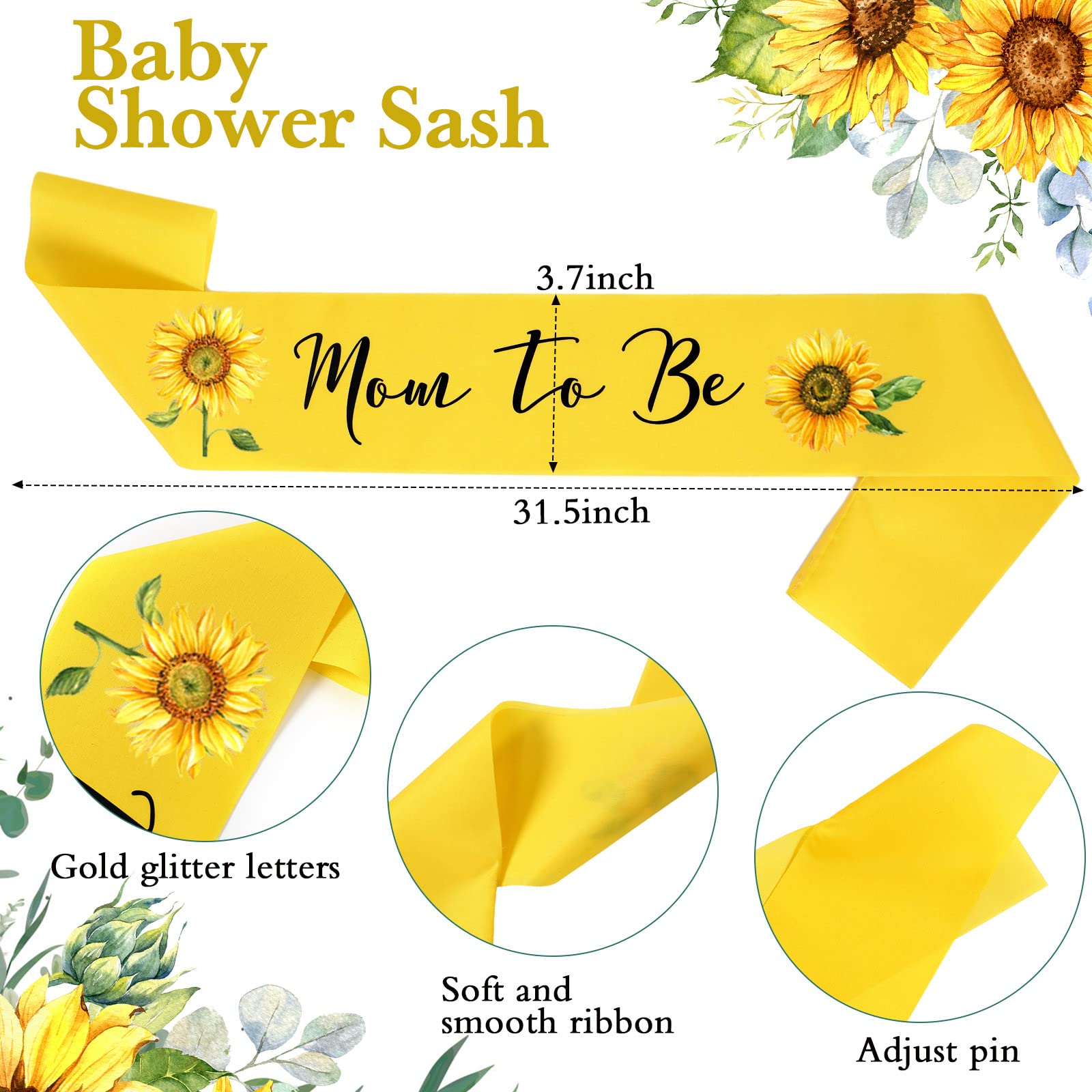 Sunflower Baby Shower Gifts for Mom to Be: this mom to be sash baby shower are suitable for sunflower themed baby shower, and they are printed with cute woodland animals and eucalyptus leaves, eye catching and adorable, ideal for sending to mom