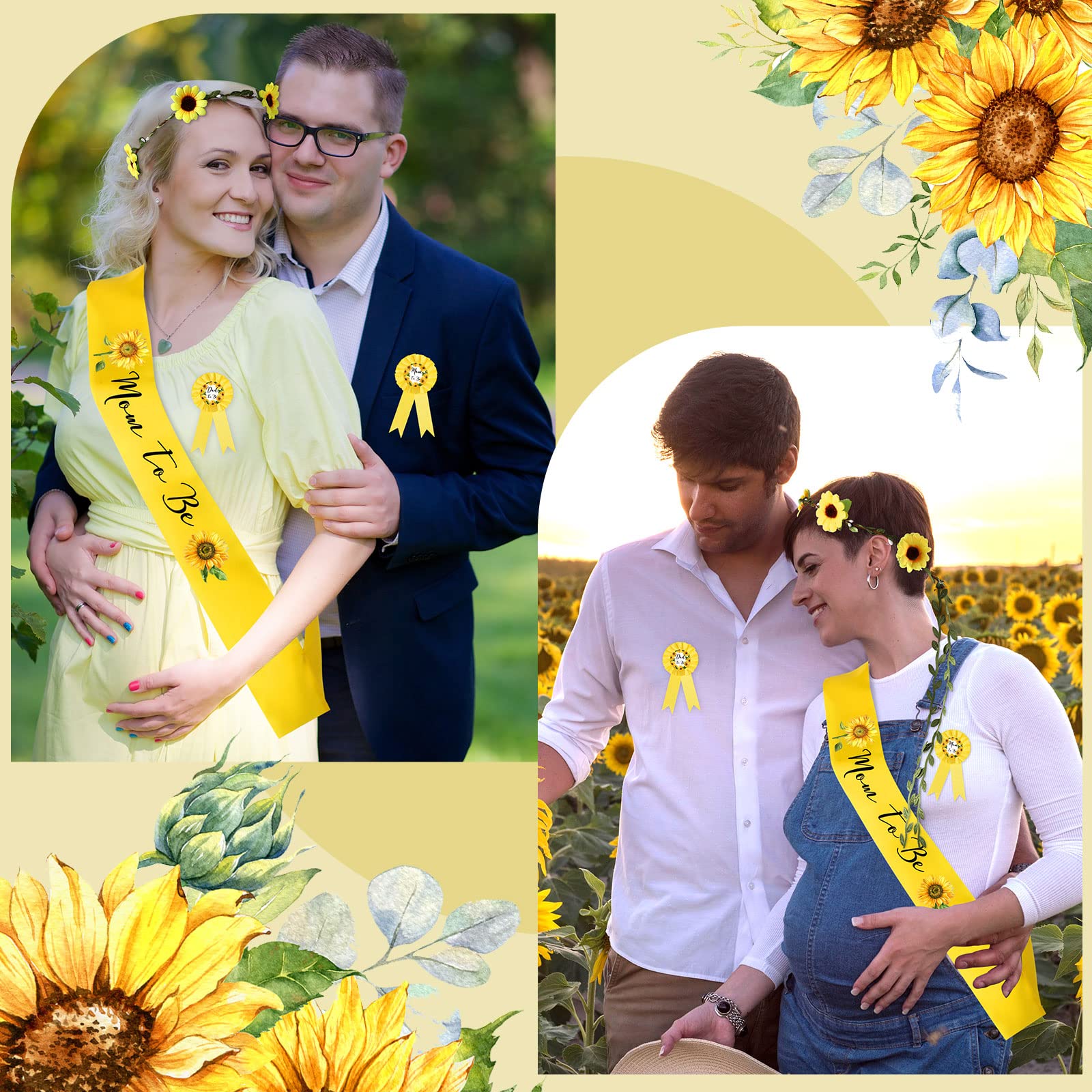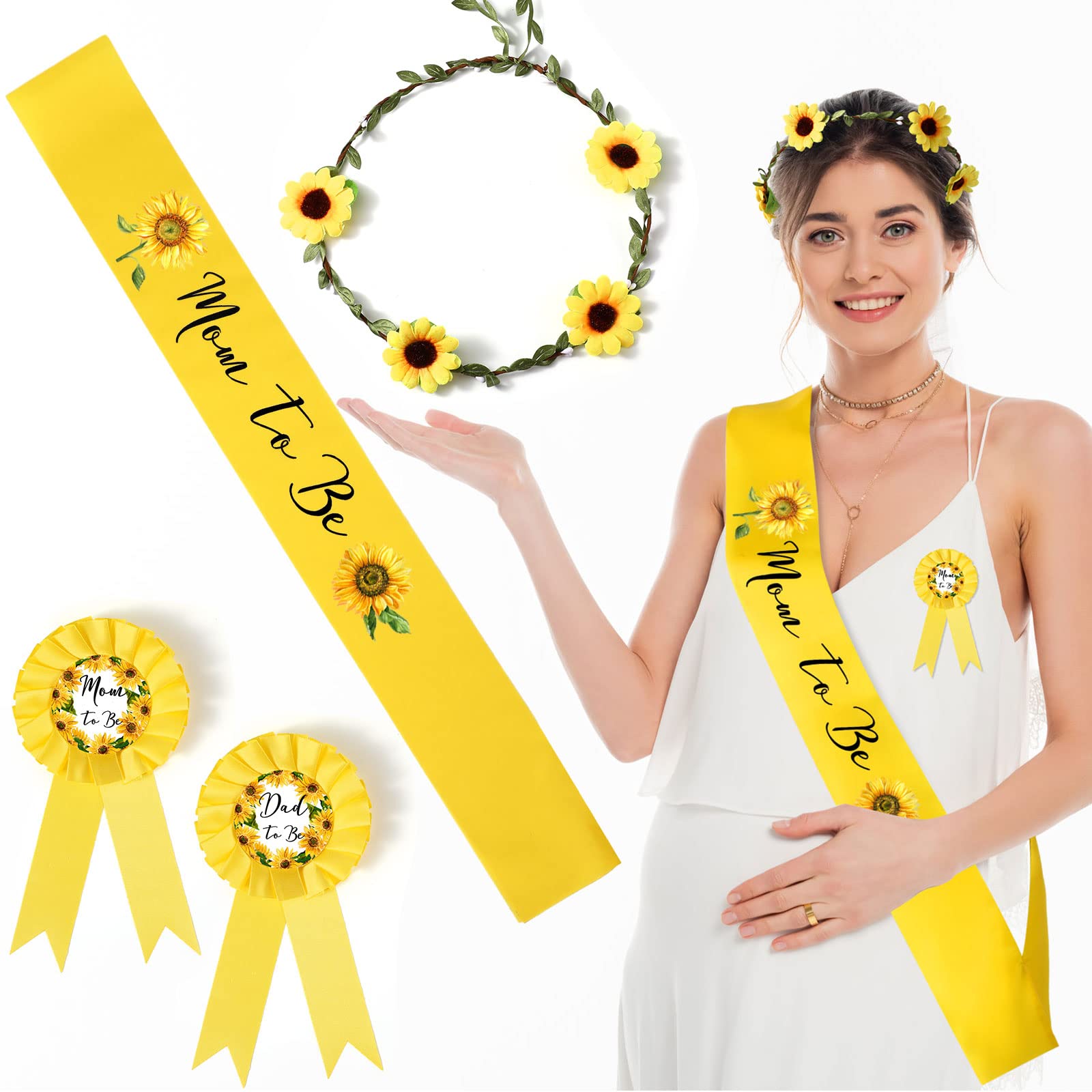4 Pieces Baby Shower Accessories: the package comes with is 1 mom to be sash, 1 eucalyptus leaves crown, 1 dad to be badge and 1 mom to be badge, such a nice and complete combination that can satisfy your needs for a baby shower