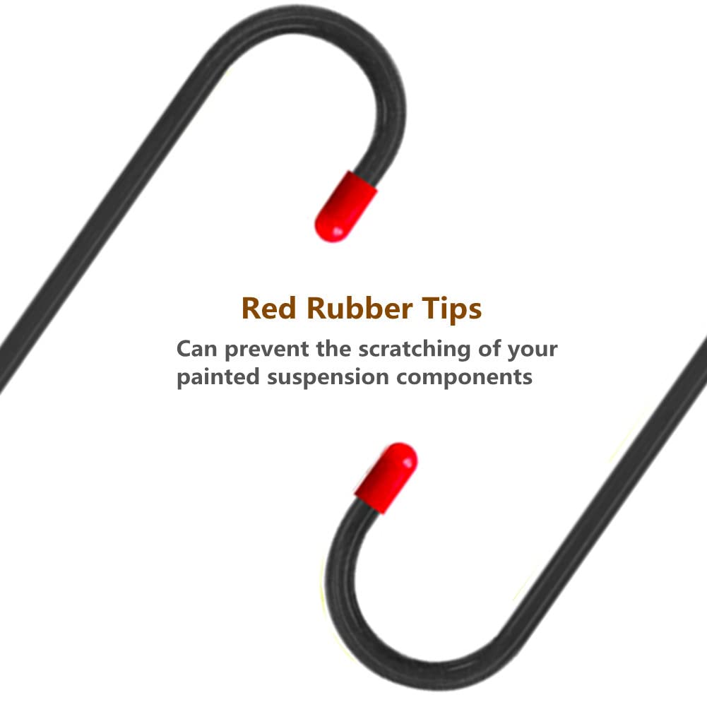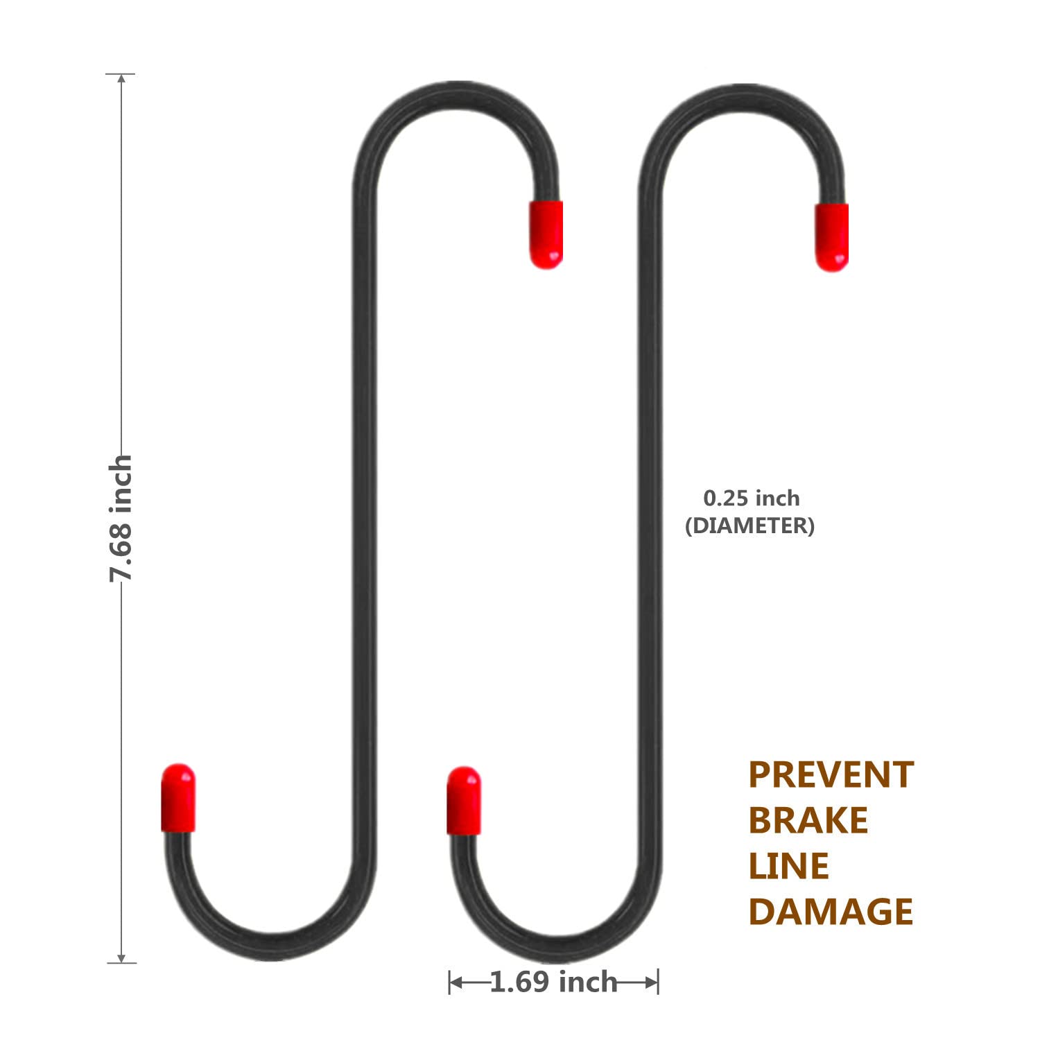 Rubber tips: each brake caliper hanger features a rubber coated tip at each end of the hook, which can effectively prevent the scratching of your painted suspension components, hold your brake caliper safely, and reducing the possible damage to brake hoses .
