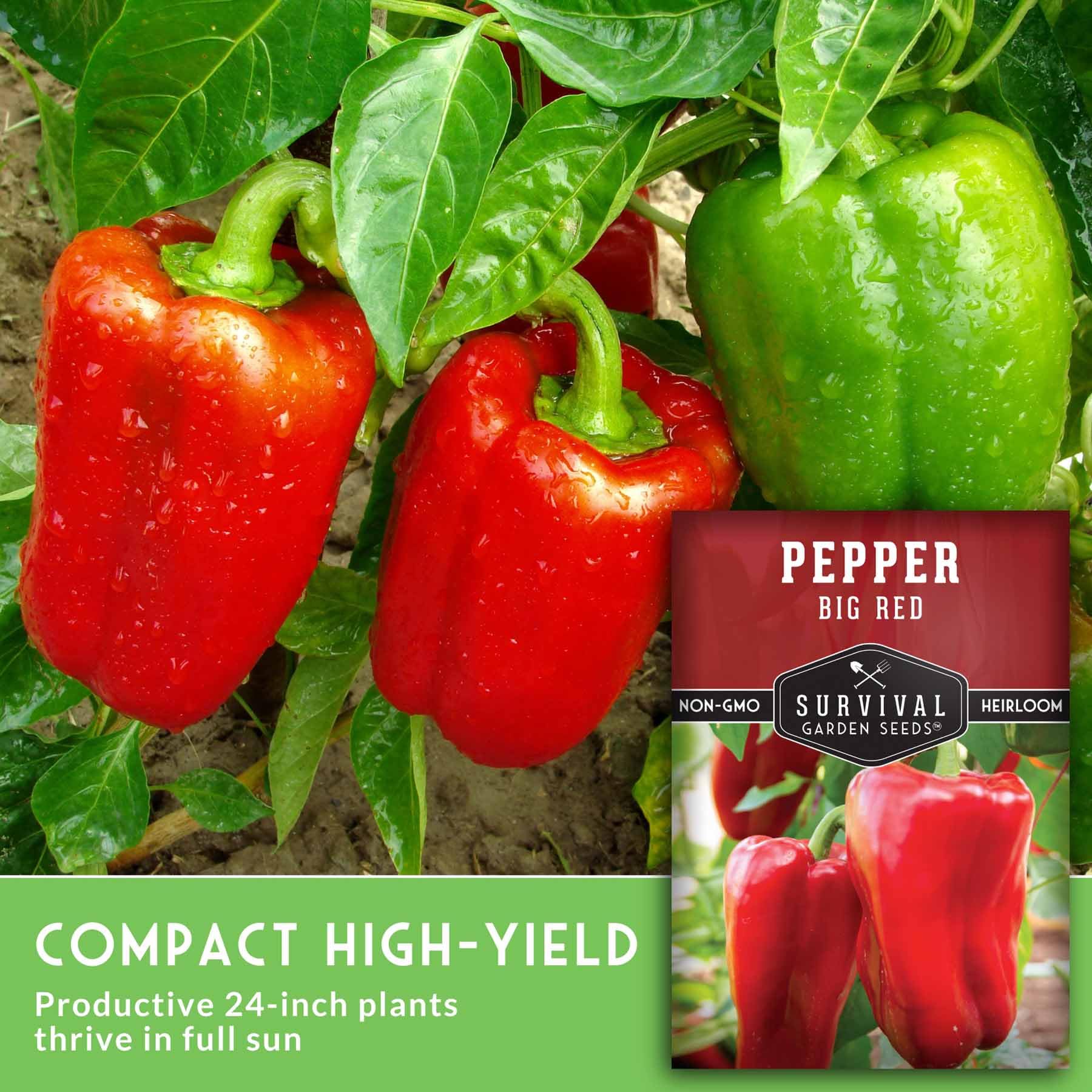 HIGH YIELD COMPACT PLANTS – Big Red Pepper (Capsicum annuum) plants grow up to two feet tall and thrive in full sun and well-drained soil -- a perfect choice for patios, containers, and small spaces