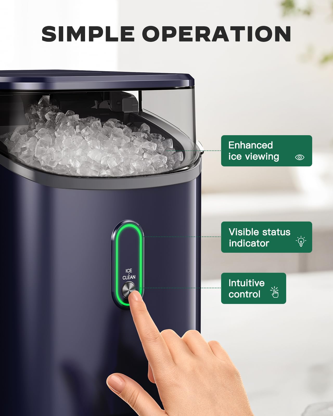Intuitive Control and Clear Status: The control button and status indicator are positioned prominently on the front for easier access and visibility. See status at a glance, with no need to walk over and check