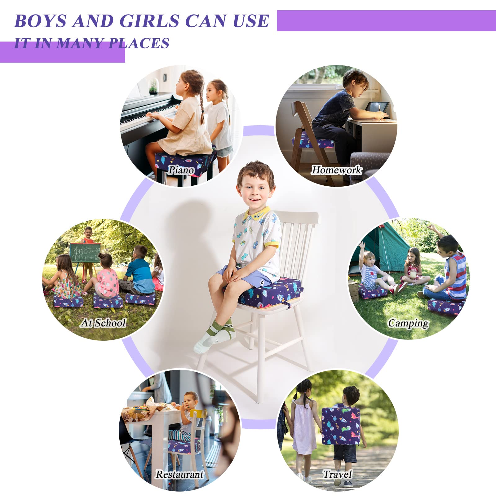 [Versatile Use] Our toddler booster seat for table are colorful and have a cute dinosaur design to enhance your kid's enjoyment of mealtime.Kids booster seat for dining table can be used at home for eating, drawing, playing, or as a portable high chair for going out to restaurants, traveling, and other public areas
