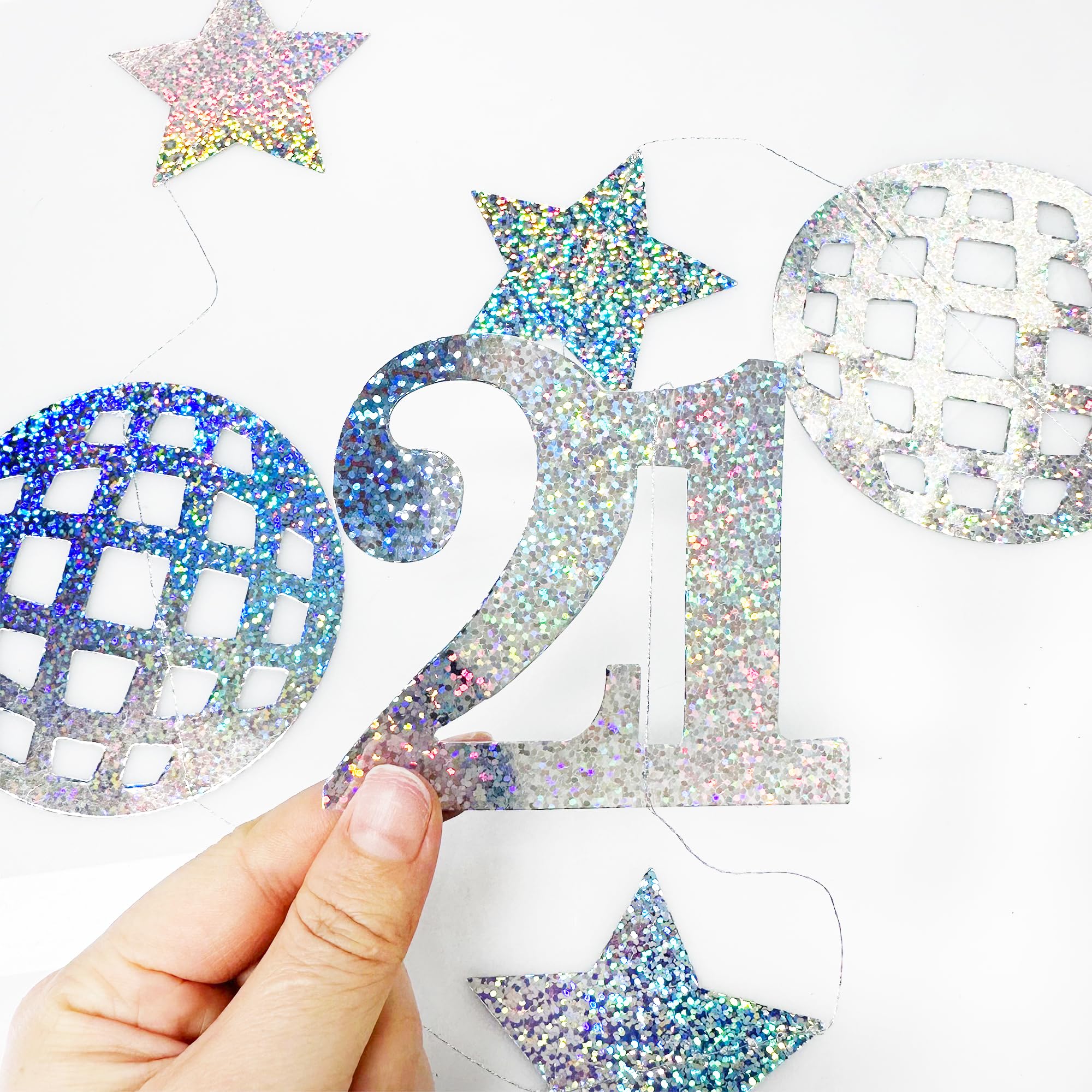 Easy to assemble: unravel the entire string and hang it up with care to avoid twist. Our laser silver star and disco ball garlands with figure 21 can be cut to different lengths. Just hang it on the walls,windows, gift tables, dessert tables, fences, tree branches, hallway and other indoor and outdoor places you like.