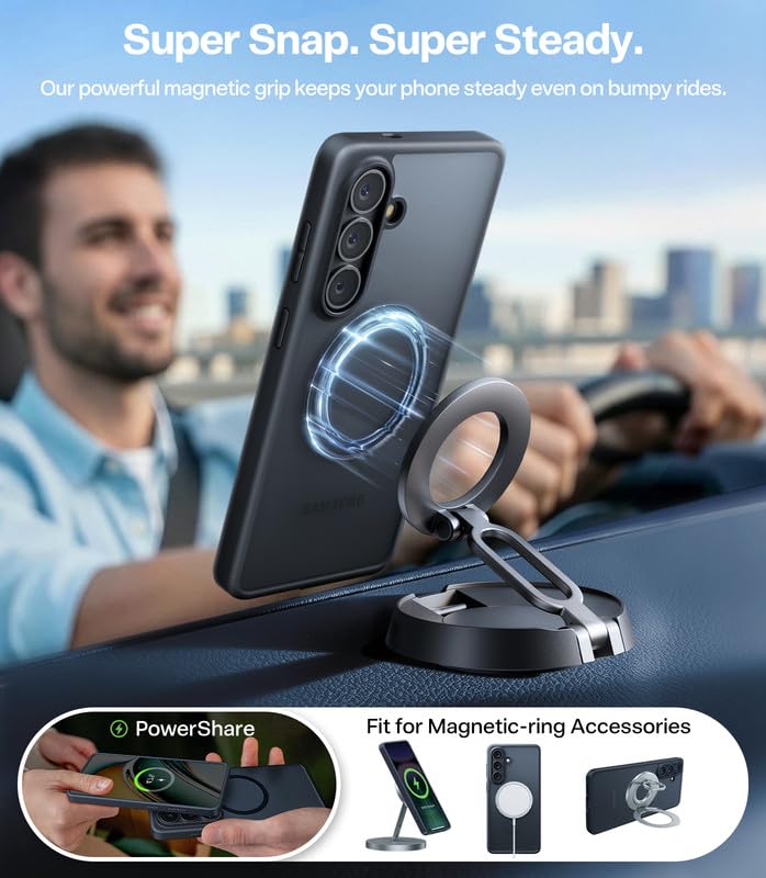 [18N Magnetic Force, Stronger, Safer Connection] Powered by TORRAS exclusive Halbach array and 36 N56H Neodymium magnets, this Magnetic Shockproof for Samsung S26 magnetic case delivers 18N of force for a secure, wobble-free hold. Unlike single-ring designs prone to overheating, our multi-magnet array enhances heat dissipation for safer charging. The S26 case is fully compatible with all magnetic accessories and wireless fast charging. Experience seamless, stable, reliable magnetic performance
