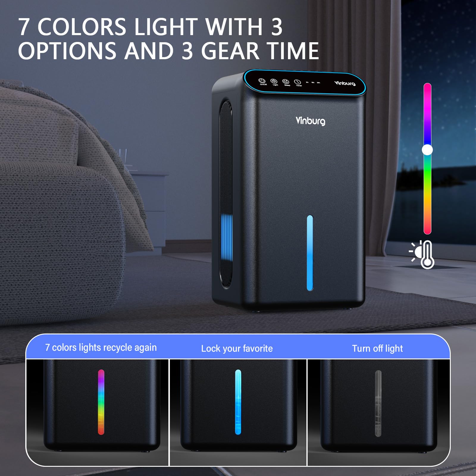 【7-Color LED Night Light & Freshness Function】Featuring 7 soothing LED colors that cycle automatically or lock to your favorite shade, this unit also serves as a gentle night light for bedrooms, nurseries, or bathrooms. The built-in cotton pad lets you add a few drops of essential oil to subtly freshen the air in closets, small rooms, or enclosed spaces.