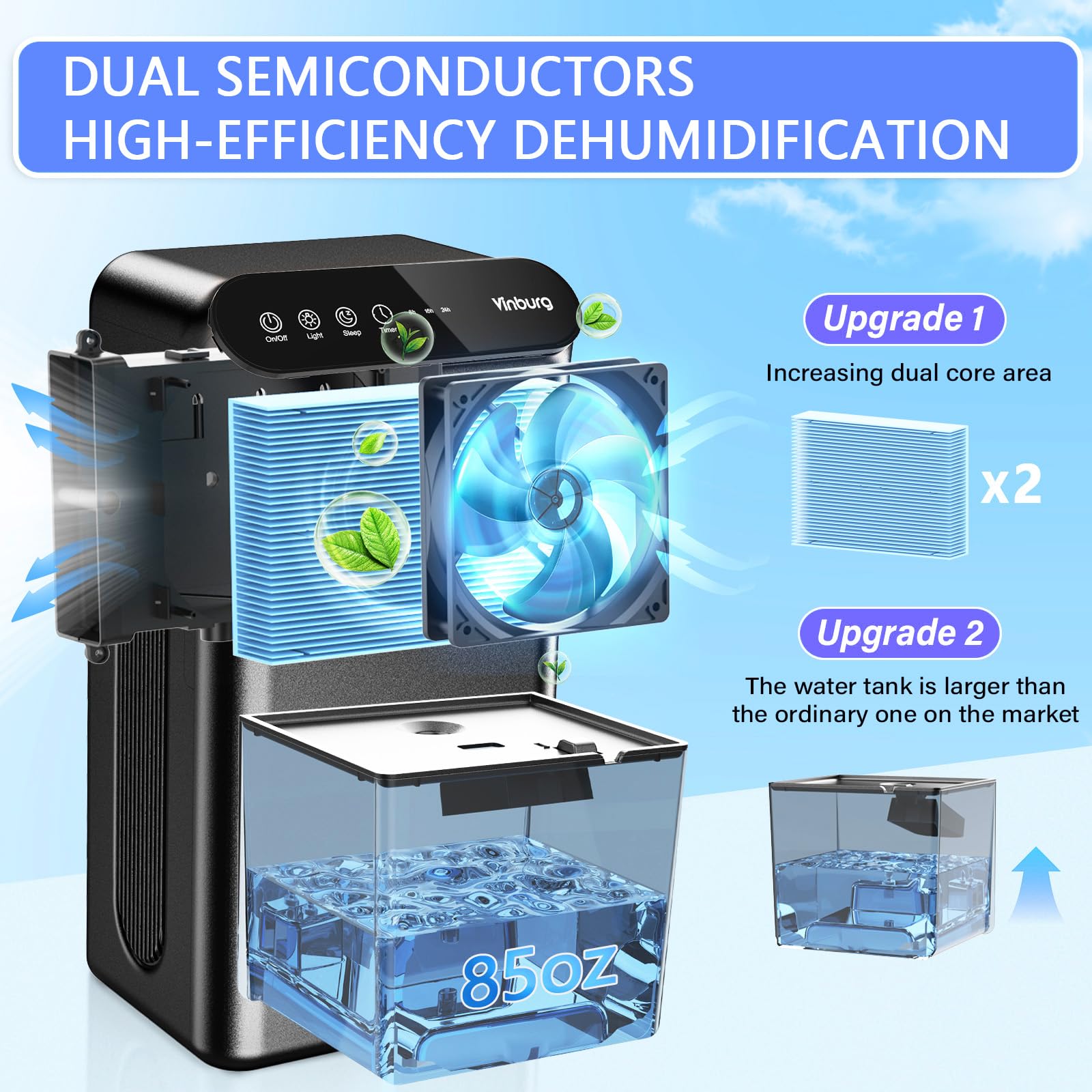 【Upgraded Dual-Core Semiconductor Dehumidifier】Equipped with advanced dual-core semiconductor condensation technology, this home dehumidifier efficiently removes excess moisture from indoor air. Ideal for bedrooms, bathrooms, closets, basements, and RVs, it helps maintain a comfortable and healthy environment. For best results, keep doors and windows closed during use.