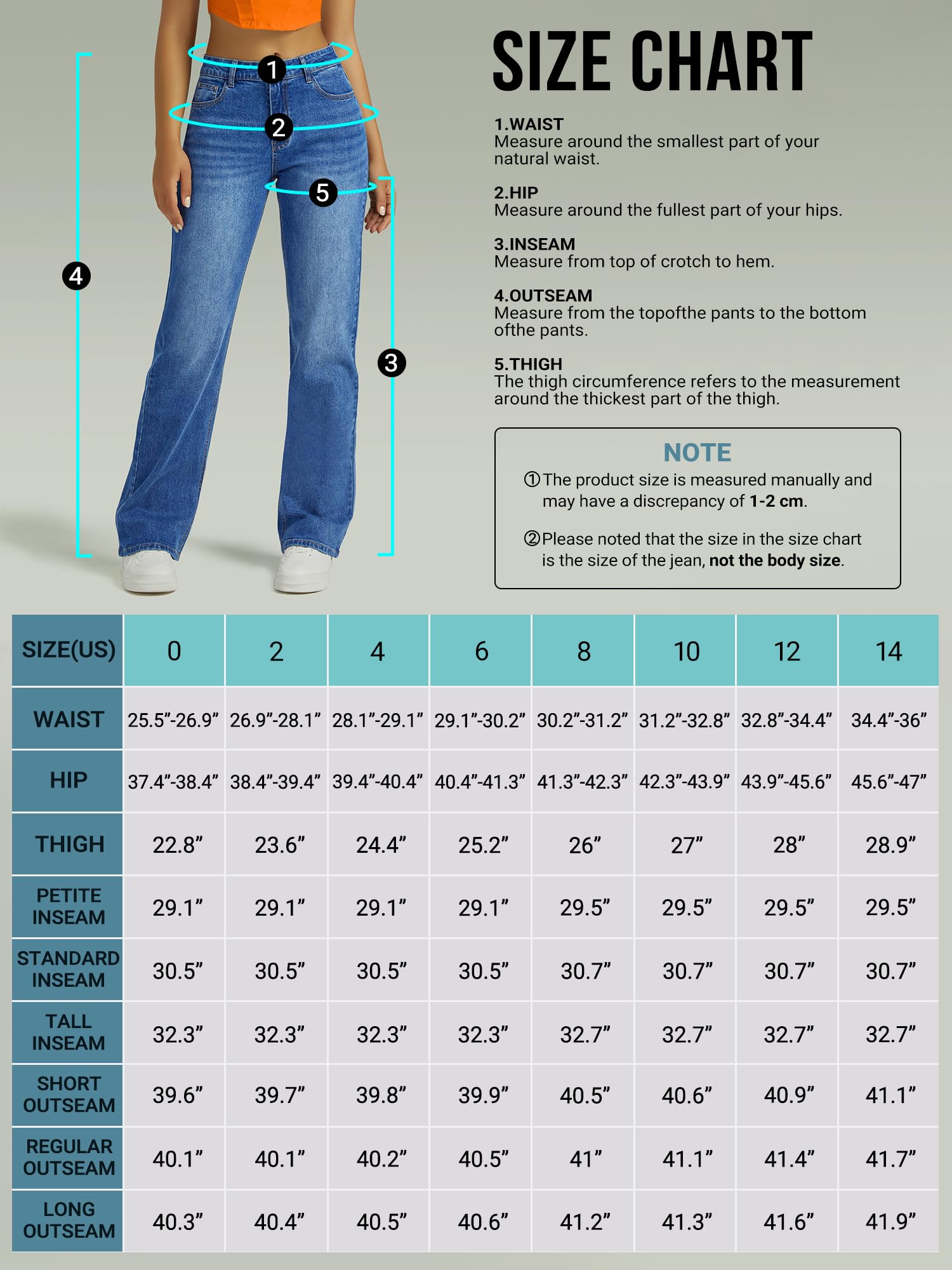 NOTE:The product size is measured manually and may have a discrepancy of 1-2 cm. Please noted that the size in the size chartis the size of the jean, not the body size.NOTE:Runs large – consider sizing down Stylish High-Rise Design: This pair of high-rise, straight-cut, wide-leg boyfriend jeans boasts a trendy high waist design, exuding a unique sense of fashion that positions you as a trendsetter.