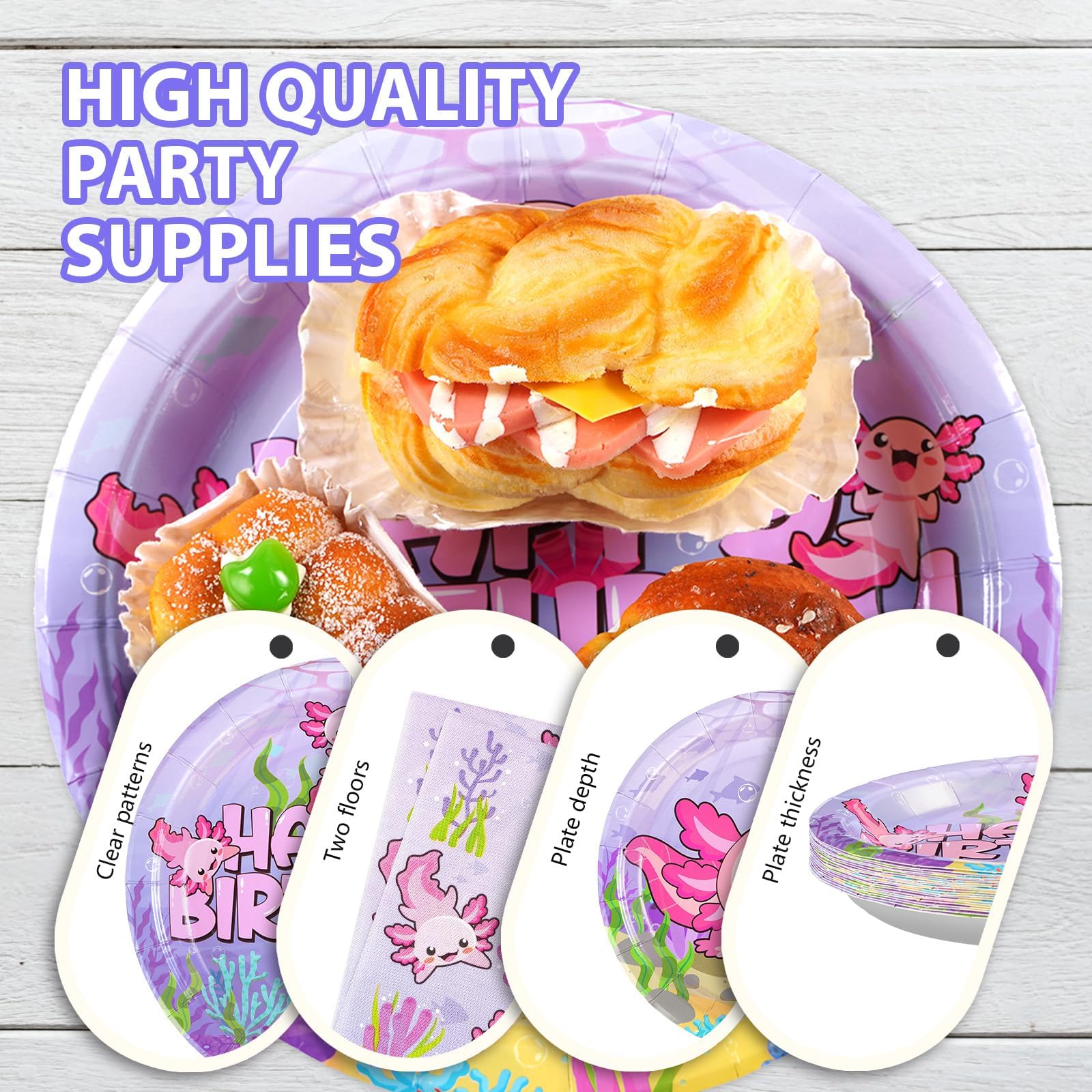 【Save Time】This axolotl party decorations are an ideal replacement for traditional party plates. You only need to dispose of the axolotl themed dinnerware set after use, no need to wash the dishes and other tedious tasks.When the party is over, you can spend more time with family or friends and less time cleaning up.