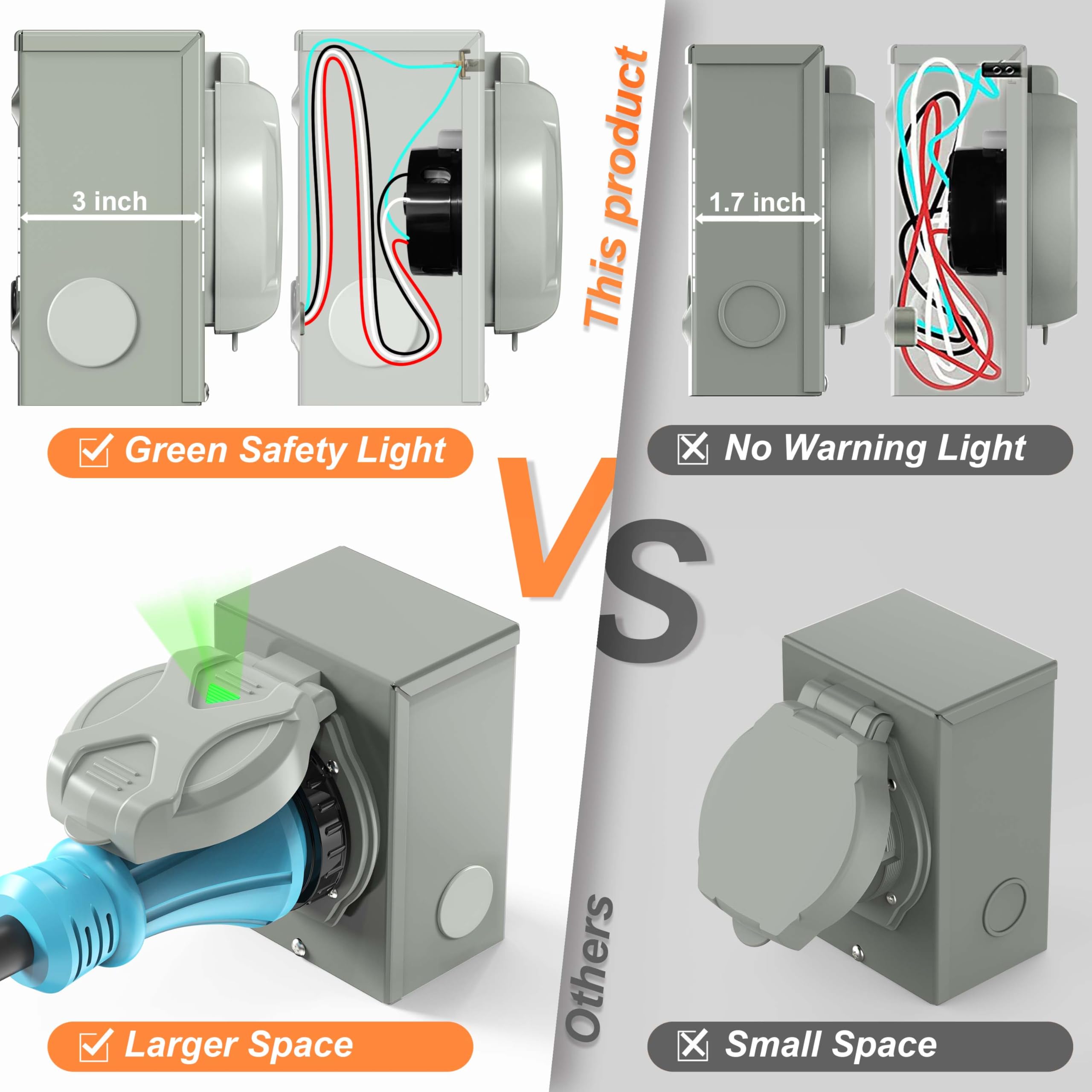 Larger Space: Our power inlet box has 50% more internal space than a ordinary power inlet box.There is plenty of wiring space can make your wiring more tidy. And the front of the box is removable for easy placing and wiring