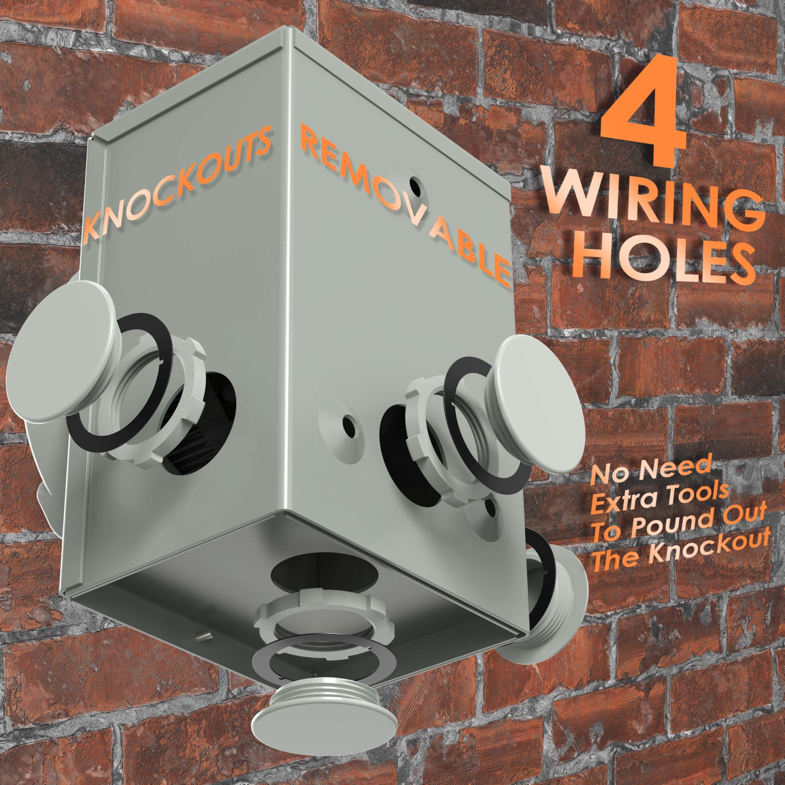 4 BIG Pre Drilled:The 4 big knockouts were replaced by removable rubber plugs made it easy to remove directly without damaging the power inlet box. No more need for a special tool (such as a driller/knockout punch) to drill. Easy to Open
