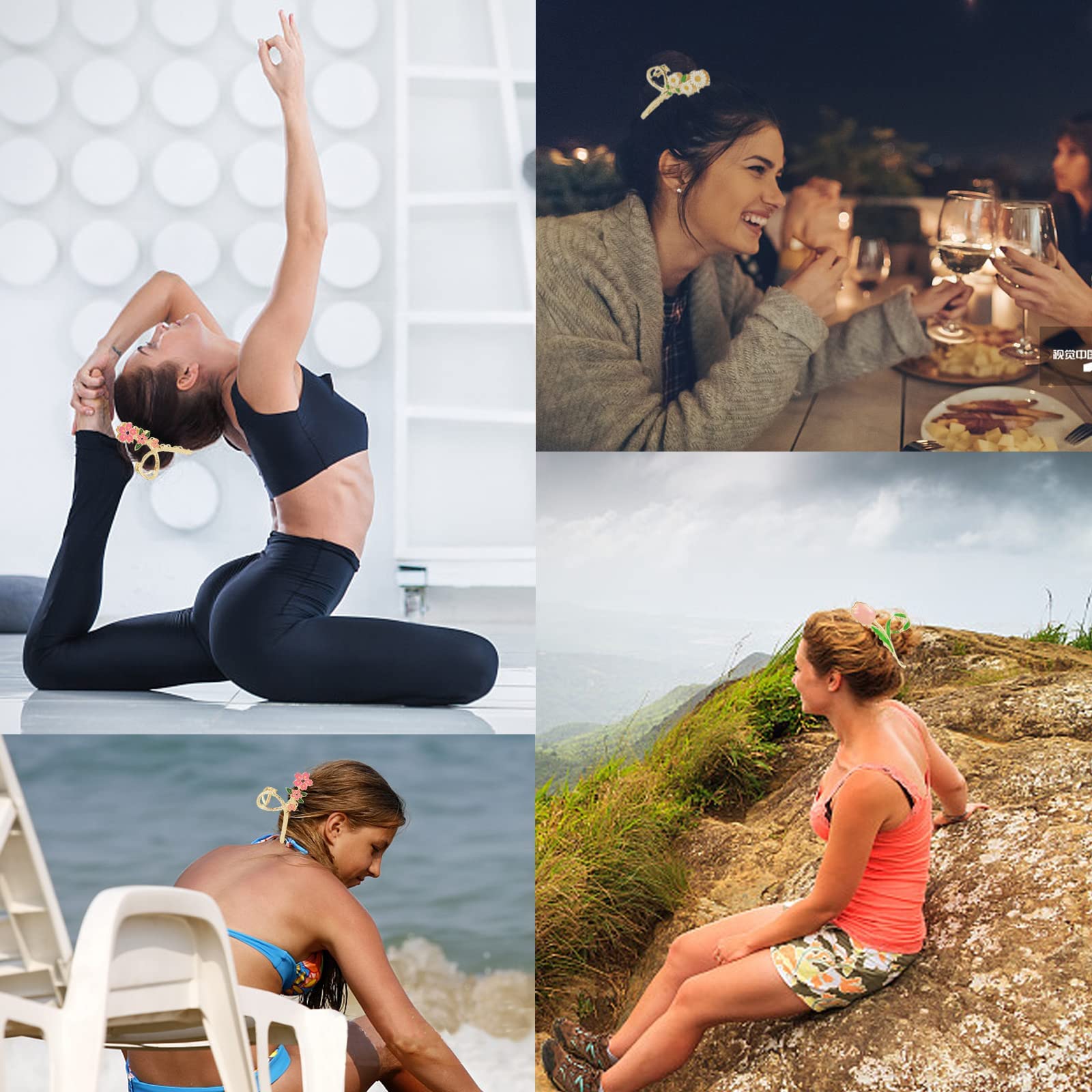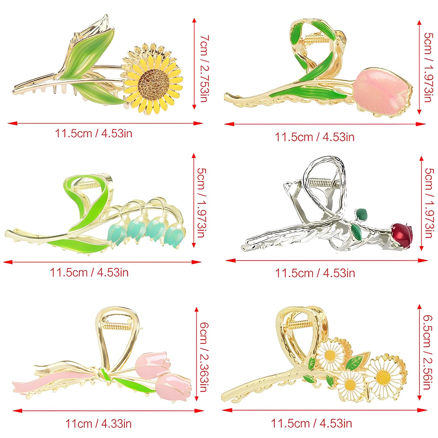 【Original Cute and Vivid Flower Design】-- Inspired by roses, Bell orchid, lilies, sunflowers and tulips, lively and sophisticated with luxurious gold, add your hair with elegance and delicacy. 6 different shapes and colors are able to meet all your daily outfits, avoiding you getting bored with the hair claw clips, offering you more choices and fantastic mood every day!