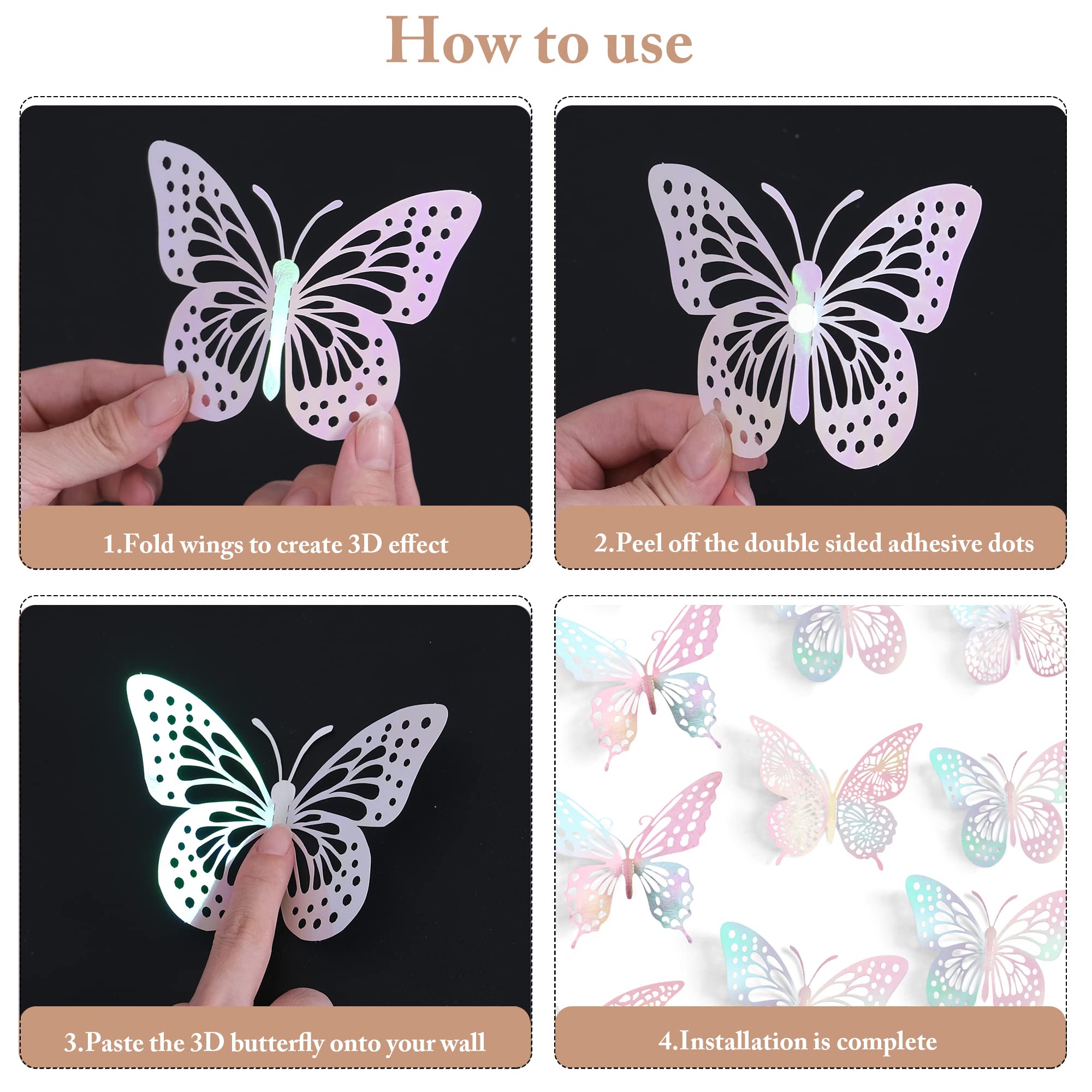 【Effortless Install】Fold butterfly wings at an angle. Stick the butterfly with glue dots on anywhere you want and a fluttering pink butterfly is ready.