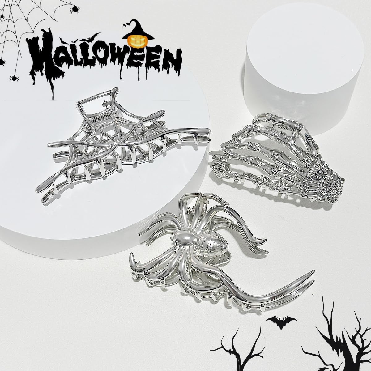 đă3 Different ClawsăYou will get 3 different hair claws in gun black color, simple and fashionable hair claw jaw clips which size are about 3.3 to 4.4 inches, they are fit for any dress, dating hairstyle you wear to match all your daily outfits. The spider skeleton spooky hair clip claws are especially fit for Halloween.