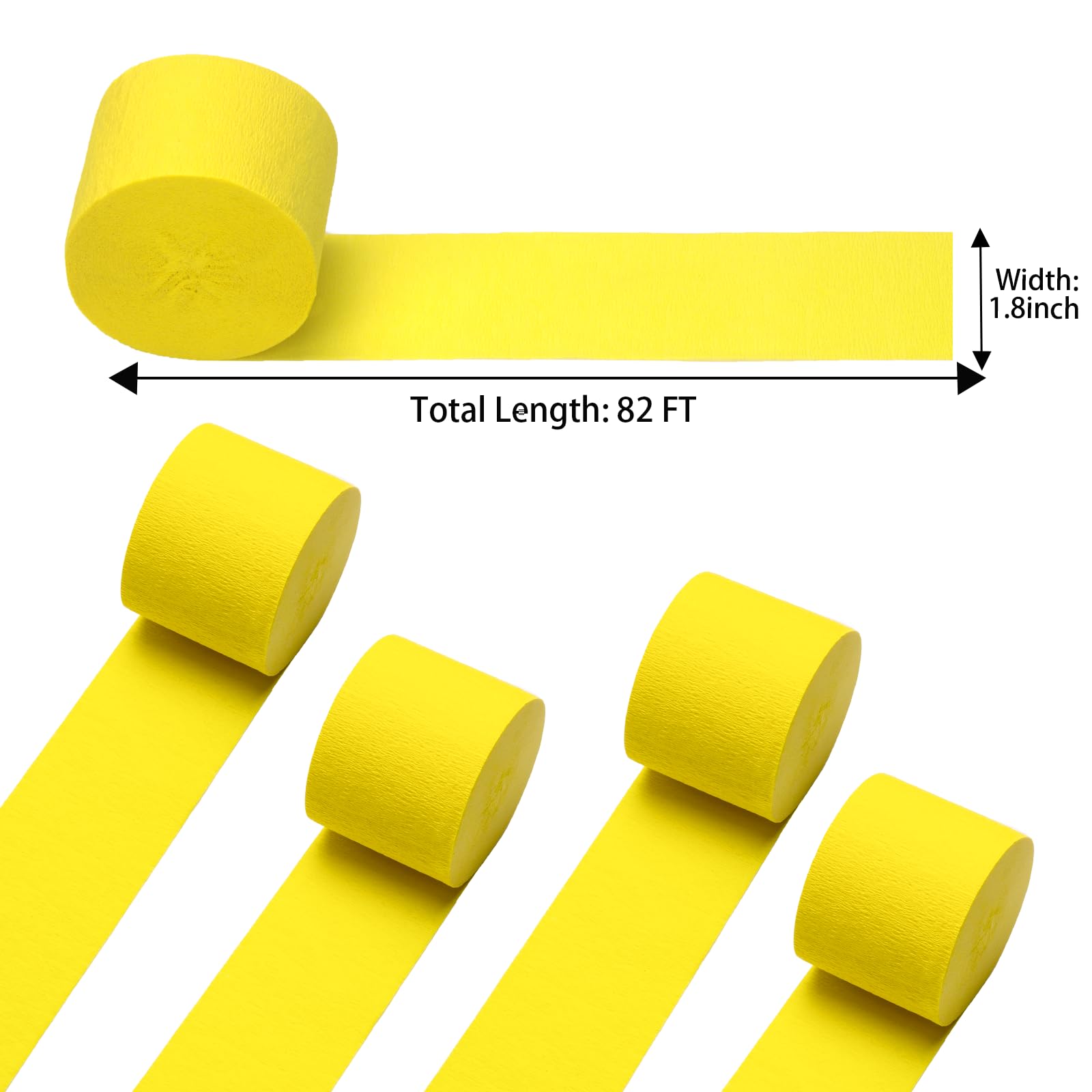 What Will You Get: 4 rolls of Yellow Crepe Paper Streamer in total, Each Yellow streamer measures 1.8 inch/ 4.5 cm wide and extends to a length of 82 feet/ 25 m long, total 110 yards, Totally enough length for you to use, no need cutting or splicing. Perfect for unicorn party, Yellow Crepe Paper Streamers will let your party decor eye-catching, Beautiful Crepe Paper for decorating window doorway, walls Garden, home party, office create a romantic dream party atmosphere. photo booths