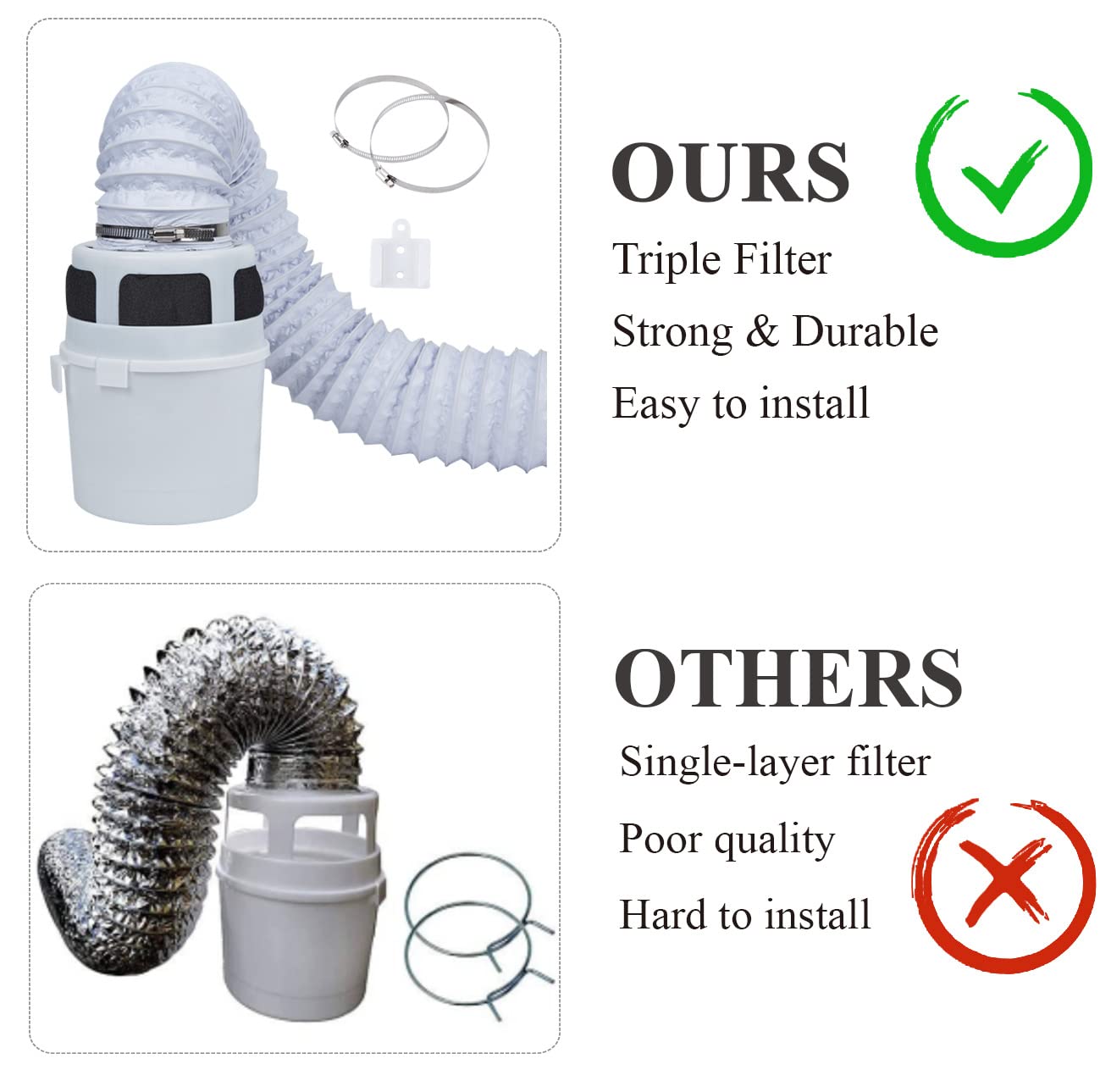 Quick and easy to install, please note that when you snap the hose to the filter bucket and the dryer it may be a little laborious, this design makes the connection more stronger