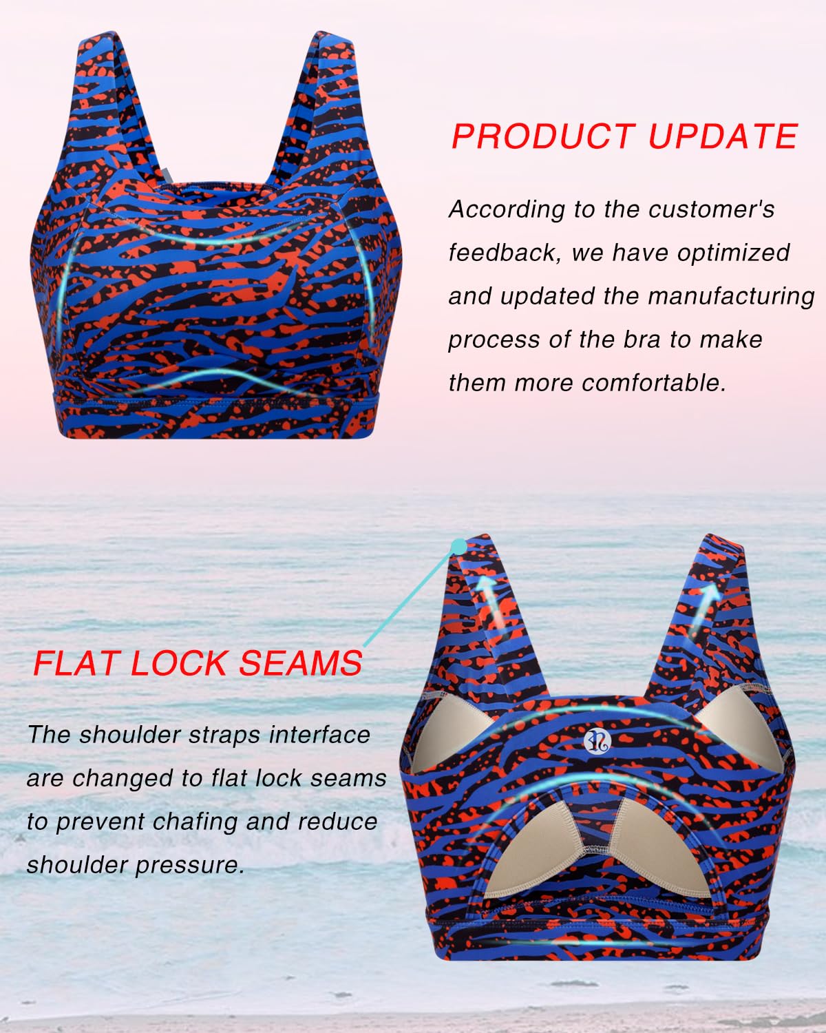 ✅ 【STREAMLINED TO FIT THE BODY】: These flat cup lining seams around the breast is the most proud part among all designs of this workout tops, according to our famous fashion designers in New York. It creates a special chest area in the front of our yoga bras. It perfectly highlight your beautiful cup lines and boob shape while offers a great full coverage and support.