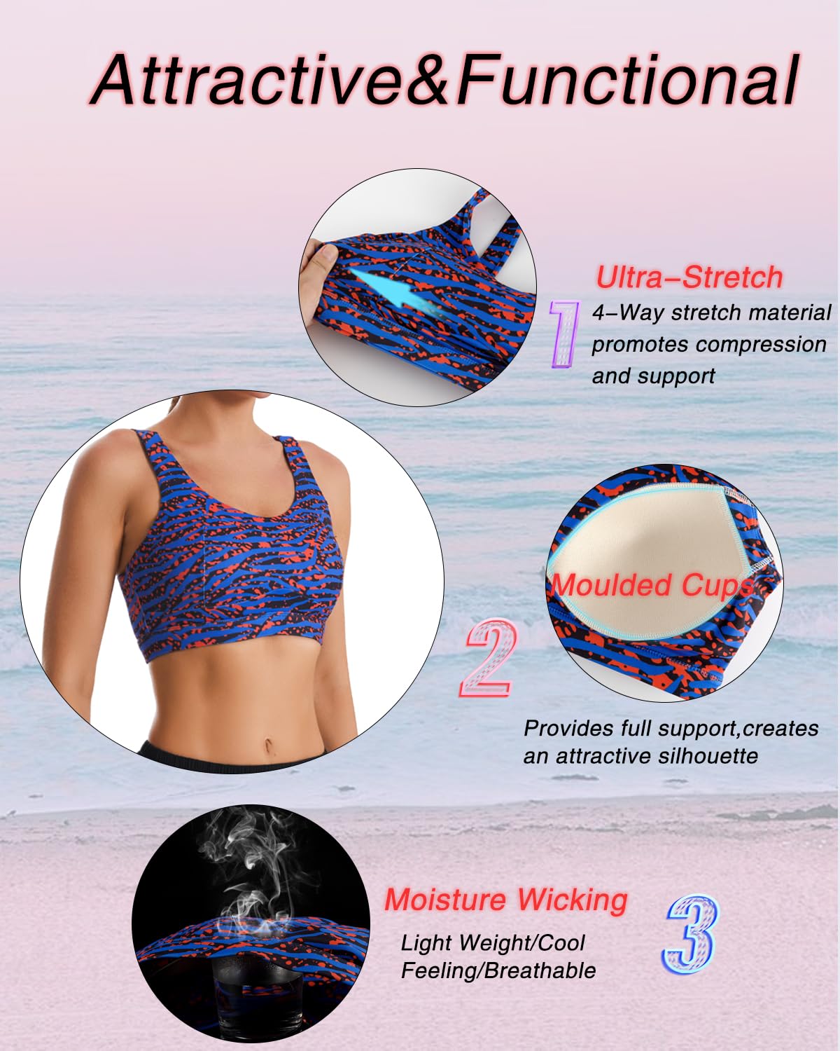 ✅ 【SWEAT OUT IN STYLE! 】: Made from a flexible four-way stretch fabric that supports your body as you move. Enjoy the freedom of movement as the open back styles aim to keep you comfy and cool while you bring on the heat! Sports bra with wide waist band for that support we all need!