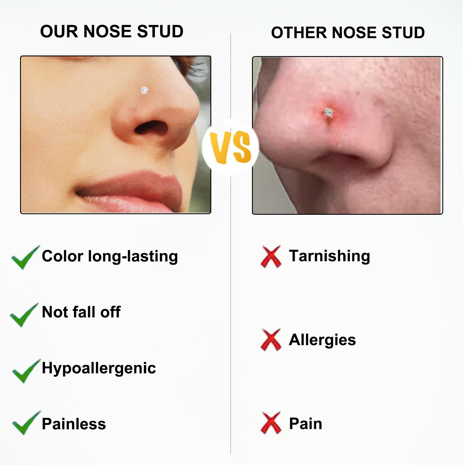Hypoallergenic Stainless Steel Nose Studs: Expertly crafted from premium 316L surgical steel, this gold nose studs is perfect for sensitive skin. Its lightweight construction features a high-polish finish and electroplating for a sleek, lustrous look.