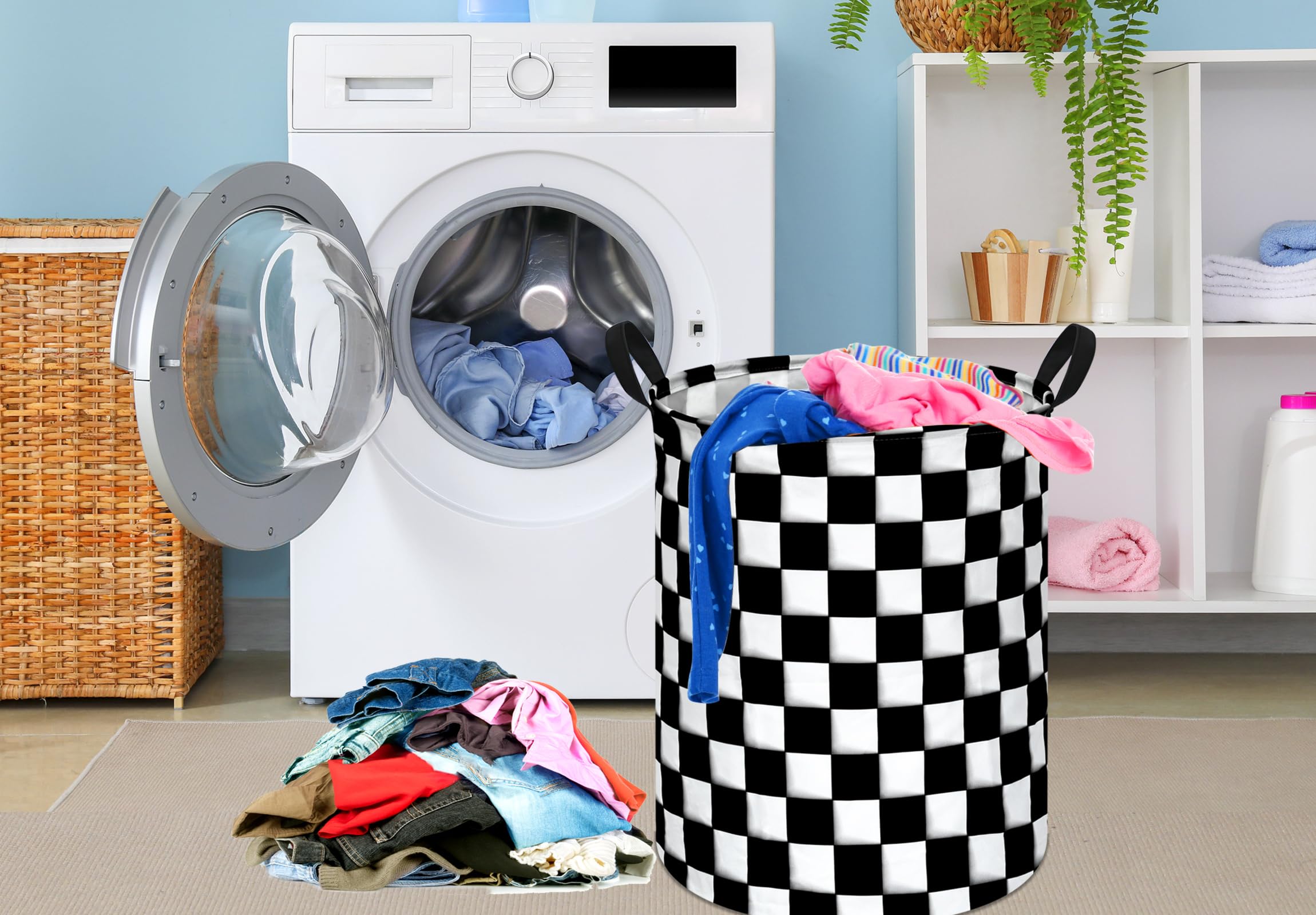 EASY TO USE: The laundry hamper adopted collapsible design, equipped with handles . It is lightweight and portable for using, storing, and moving conveniently.