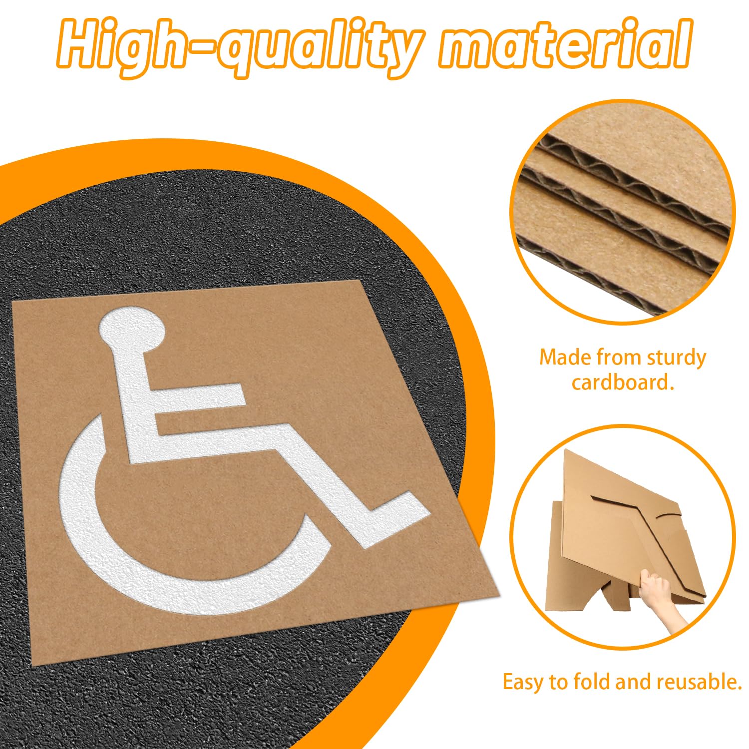 The Yookok Handicap Parking Stencil is a good tool for any parking lot manager or property owner looking to clearly mark handicap parking spaces. Made from high-quality, durable cardboard, this stencil is easy to fold and can be reused multiple times. Unlike plastic products, it does not require a hairdryer or sunlight to flatten it out; simply open the package and start using it right away. Not limited to just marking handicap parking spaces, this stencil offers versatile functionality. Use it to create other special parking spaces or traffic signage, allowing you to customize your parking lot according to your needs. The stencil features overall dimensions of 39"W x 39"H, with template dimensions of 35.5"W x 33"H, providing ample space for clear and visible markings. Please note that it is recommended to use a brush or spray paint when applying paint to the stencil, as a roller brush may not yield optimal results.