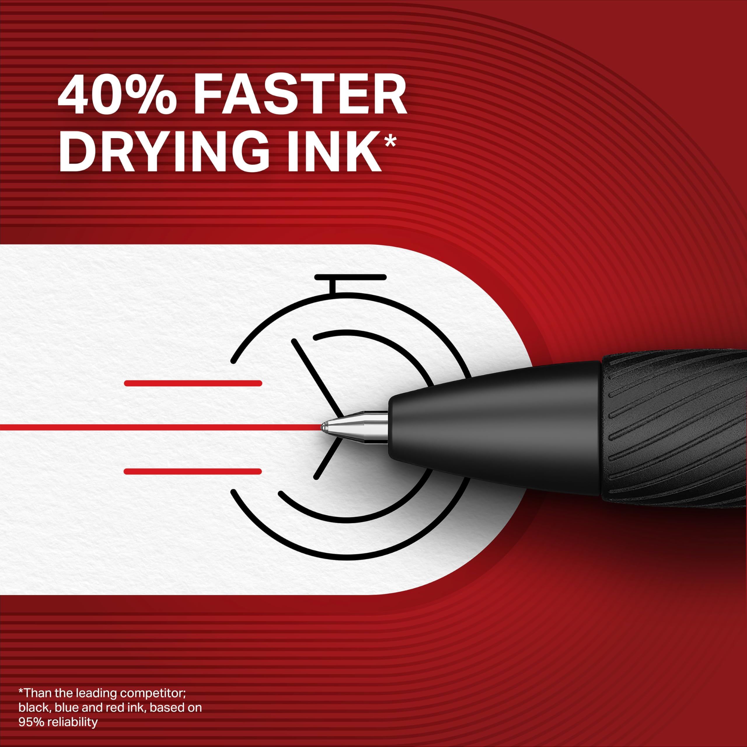 Smoother, bolder, cleaner, and quicker drying than the leading competitor (Compared to the leading competitor; across black, blue, and red ink based on 95% reliability)