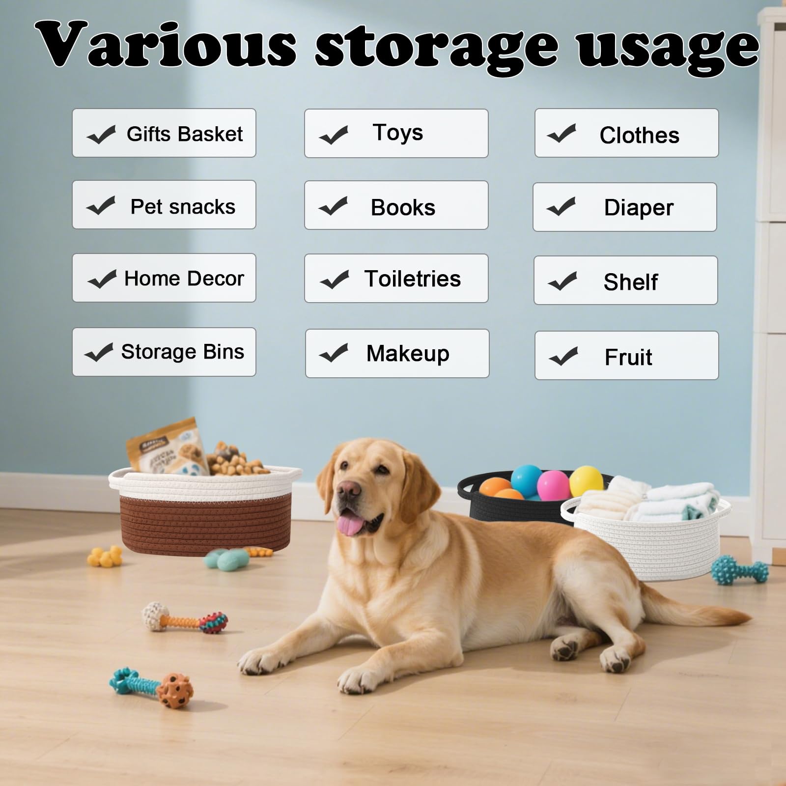 【Multi-Purpose Storage】Woven baskets for storage,bathroom organization, shelf styling,storage basket for organizing snacks, dog cat, magazine, shoes, remotes, books, towels, toiletries, keys and more.Widely used in living room,bedrooms,bathrooms,kids room,and Kitchen