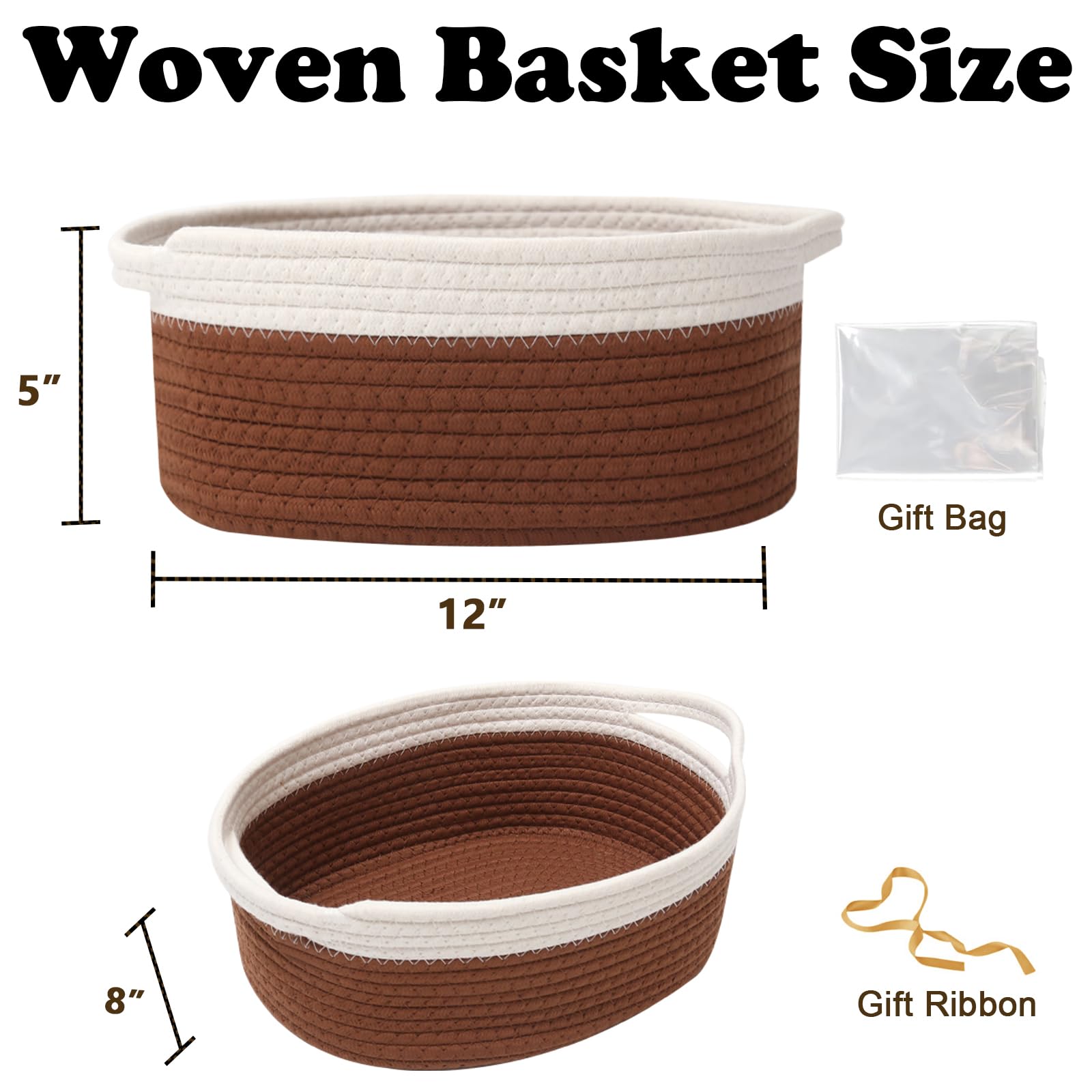【Small Gift Basket】Handcrafted for Strength, Stability and Beauty.Storage basket measures 12" L x 8" W x 5" H, Use it to organize small items, The basket itself is also a great gift