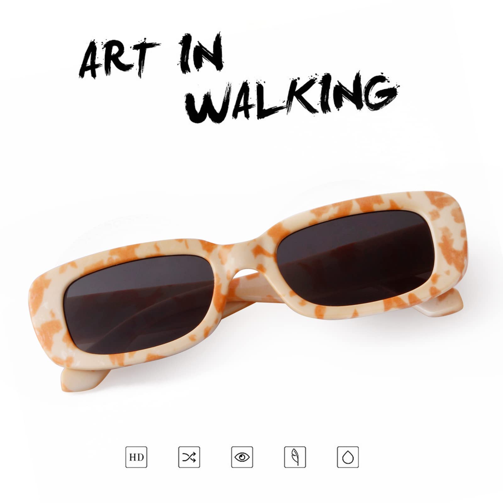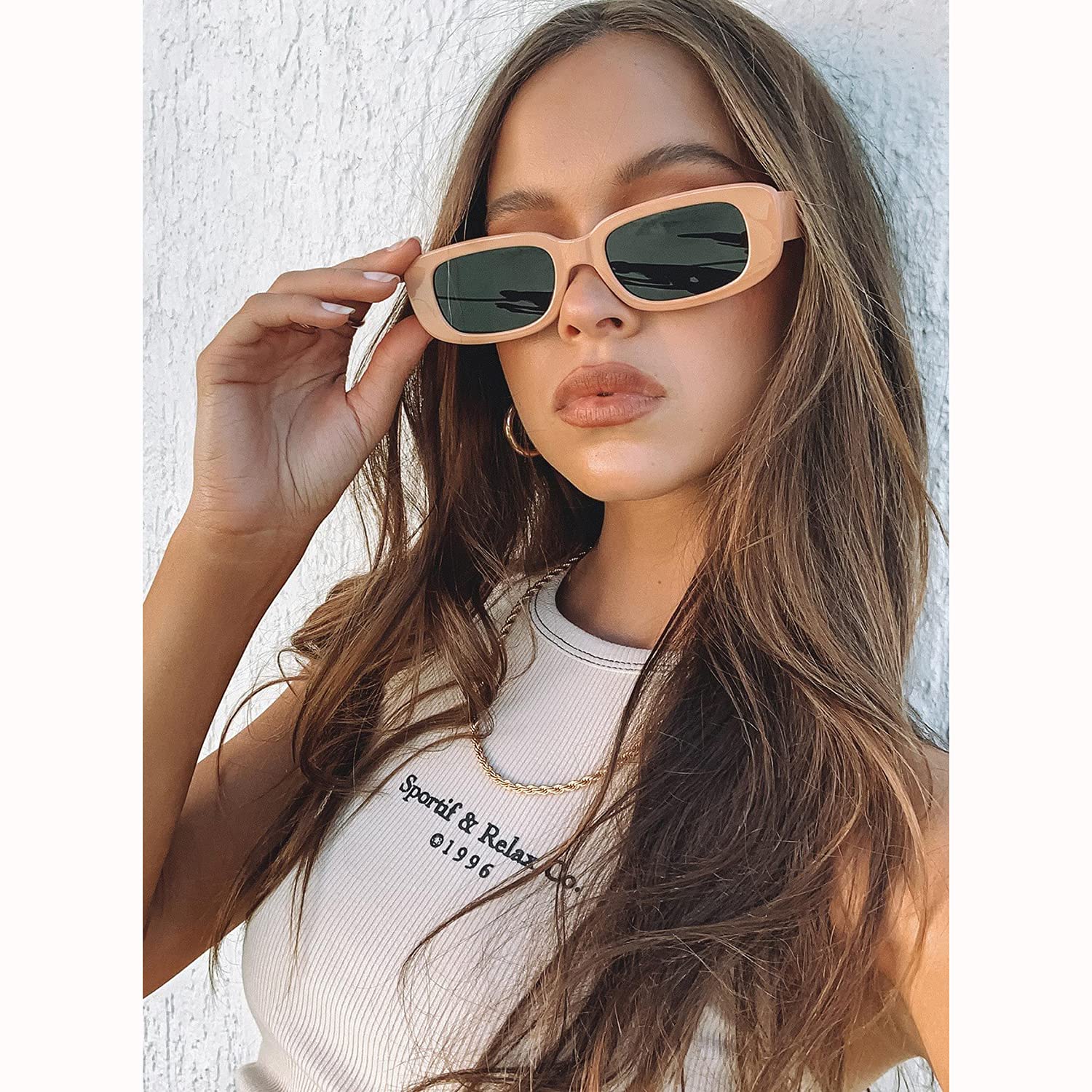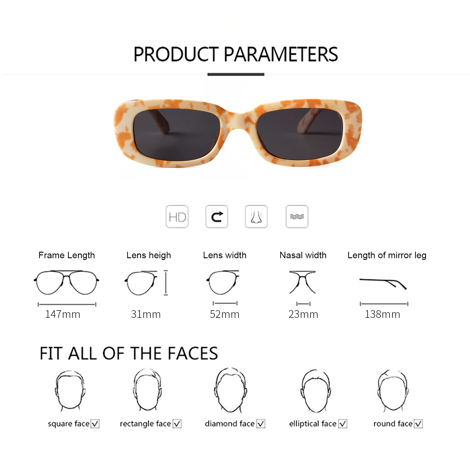 Rectangle Sunglasses for Women Men : This Narrow Rectangluar Shape Frame is both Timless Classic yet Fashionable.Suits all Face Shapes Like Oval, Round etc, It Makes for a Great Everyday Pair Sunglasses