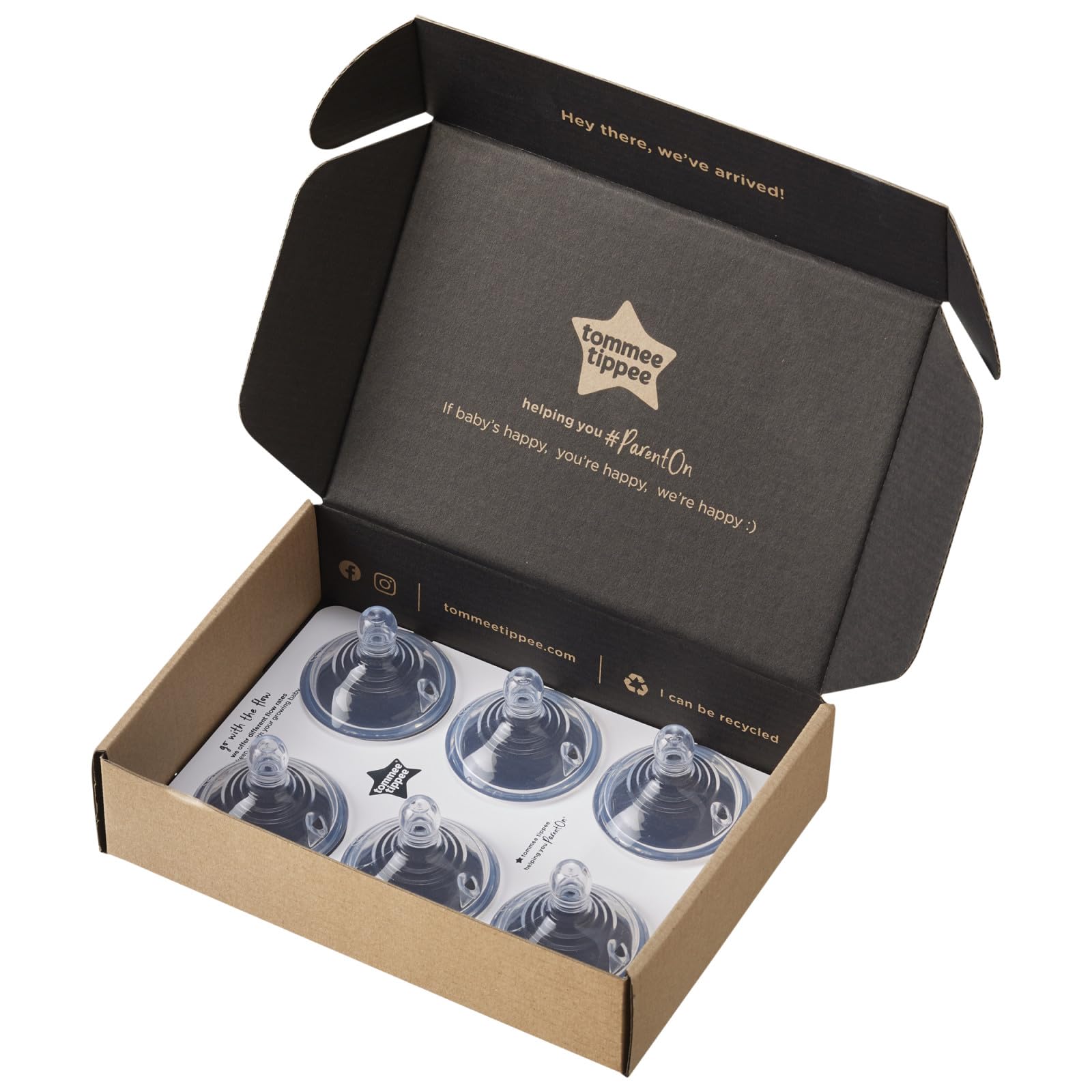 Tommee Tippee - caring for parents since ‘65. Trusted by three generations of parents and caregivers, we have 60 years of expertise behind us. We know what works, what doesn’t, and what you (and your baby) really need. Our purpose? To liberate and amplify the intuition of newborn parents with empathetic design. Part of becoming a parent is realizing that often, things don't quite go to plan. That’s why we anticipate problems before they’ve even happened, and design smart solutions to help. Tommee Tippee baby bottle nipples are crafted from ultra-soft silicone to replicate the natural feel and flexibility of a breast. Available in a range of flow rates, our Natural Start and Advanced Anti-Colic bottle nipples let babies get a natural latch, plus they're easy to clean, and always BPA-free.