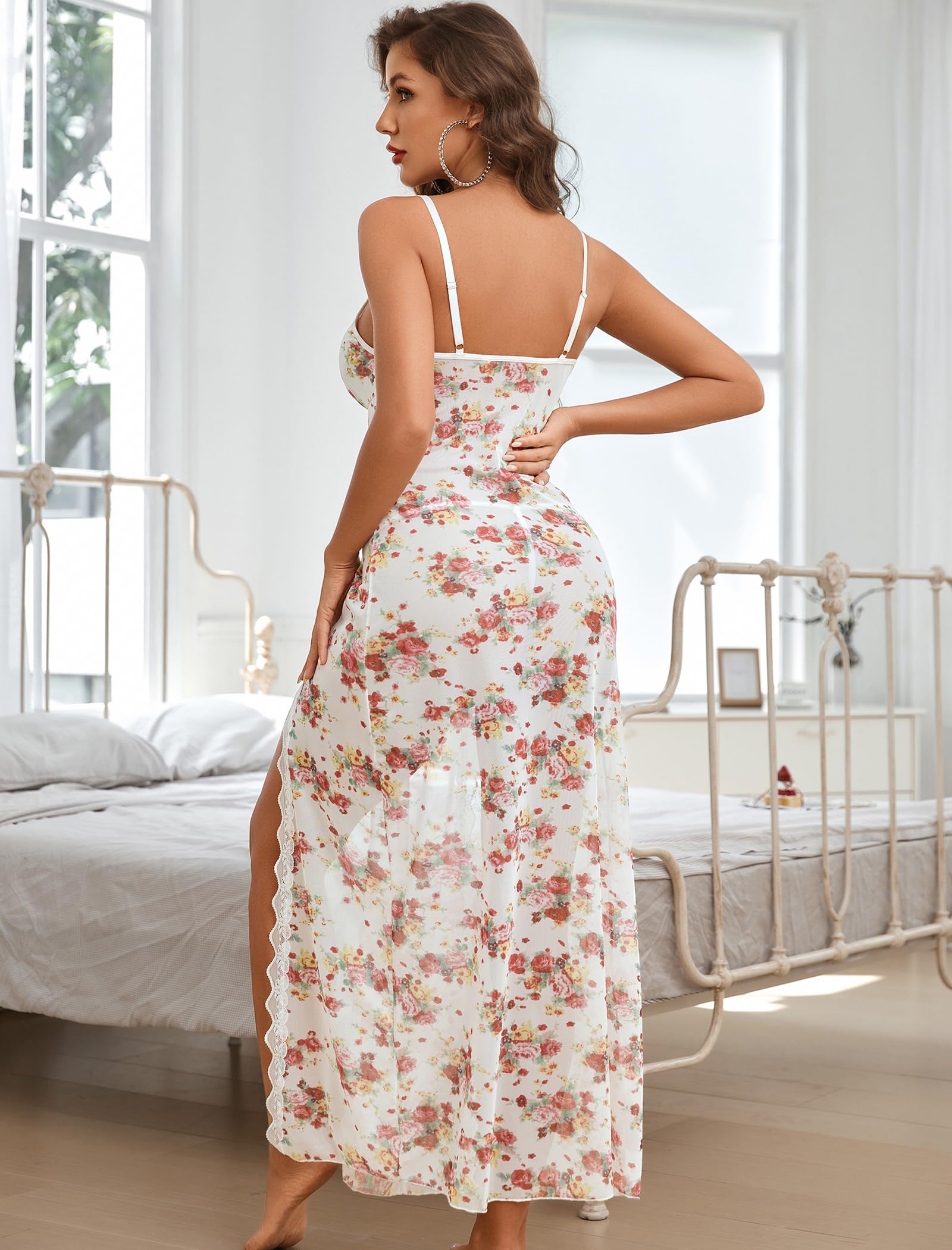 Material:This Long mesh nightdress is made of 95%Polyester,5%Spandex; floral lace and elastic mesh, high quality fabric is smooth, soft,and breathable, provide you comfortable wearing experience