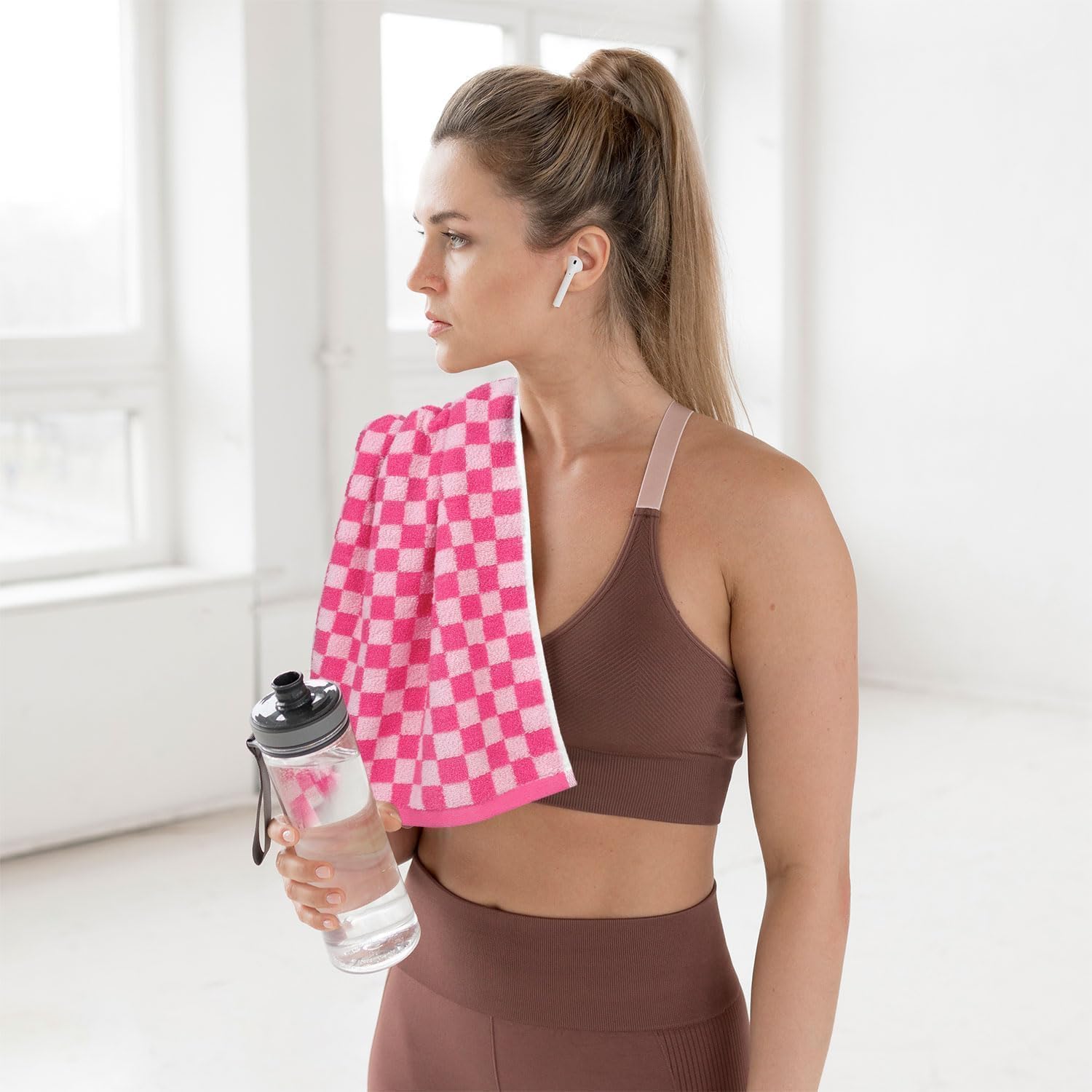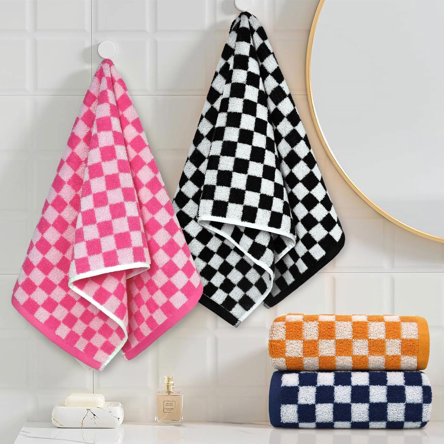 Vivid Charm: Checkered hand towels for bathroom with four vibrant colors (hot pink, navy, black, orange) make it simple to assign decorative towels to family members or specific tasks, ideal for every household