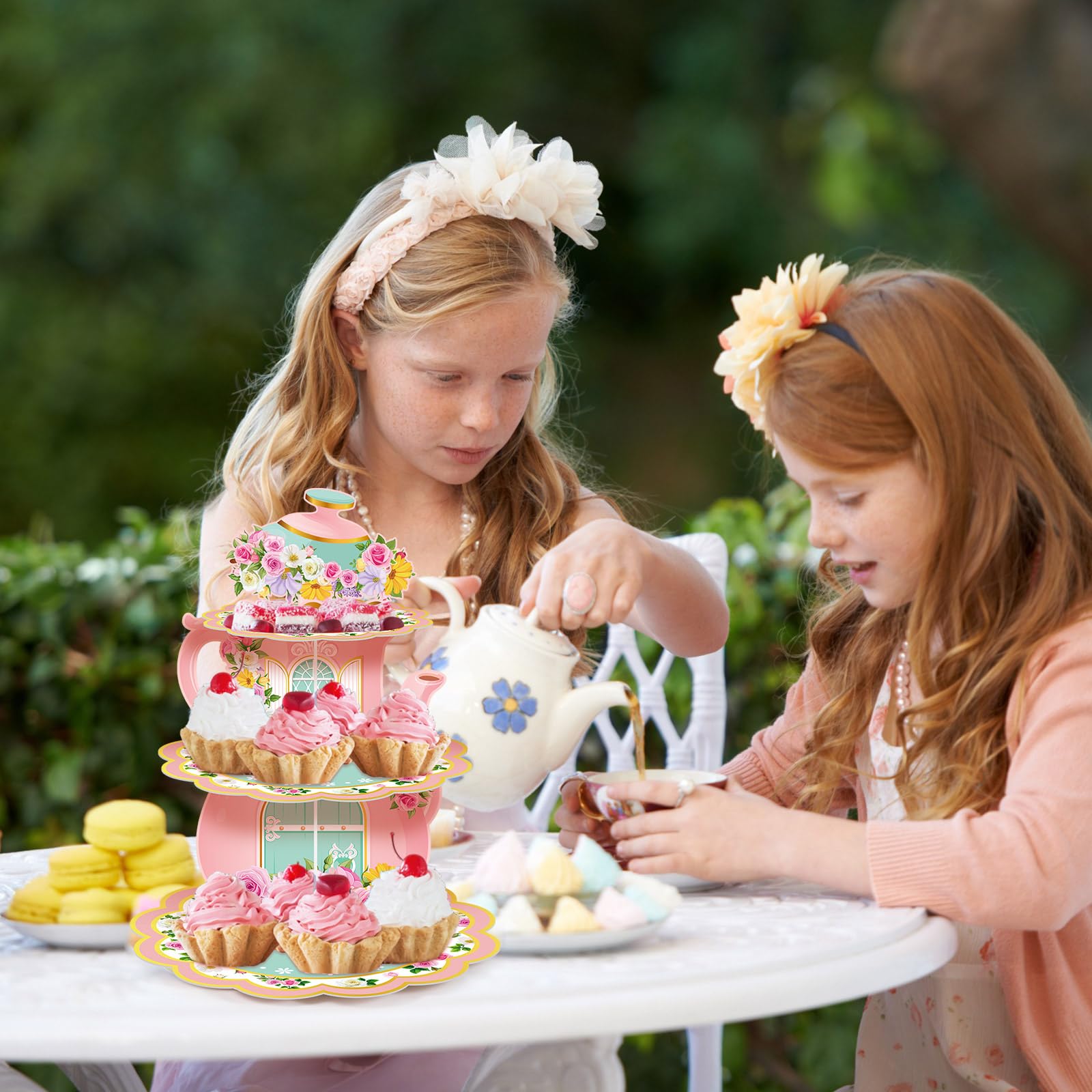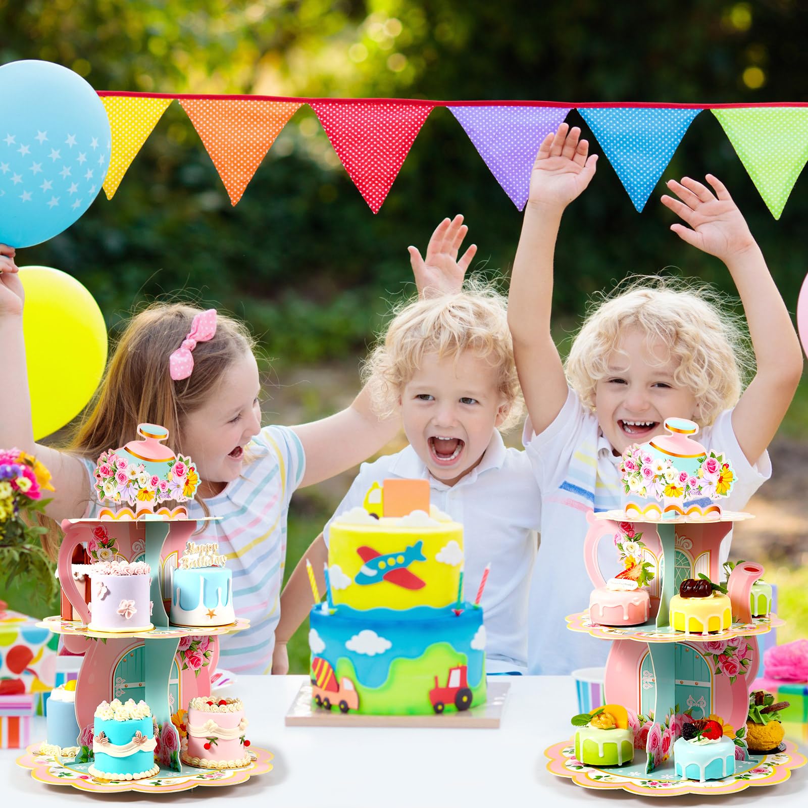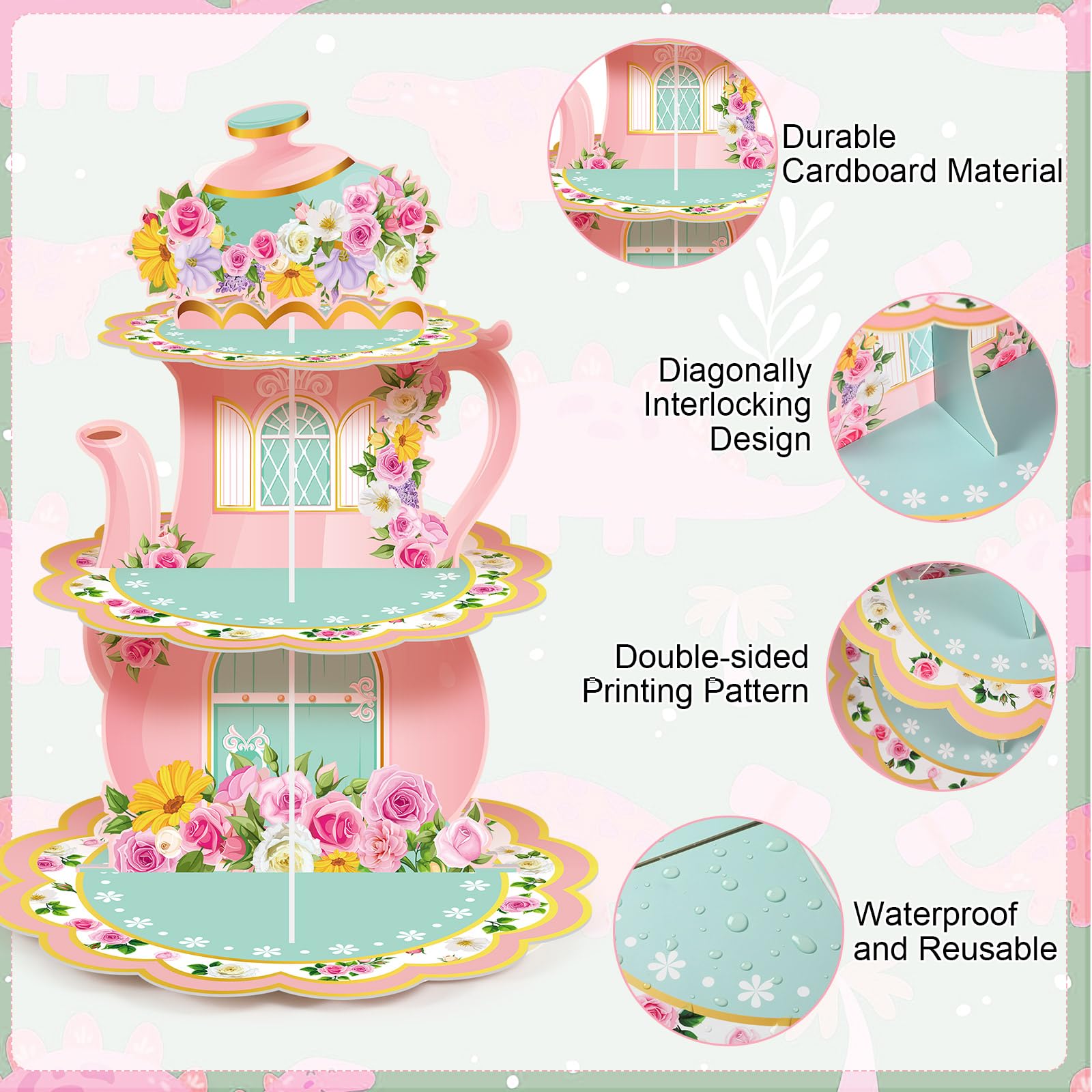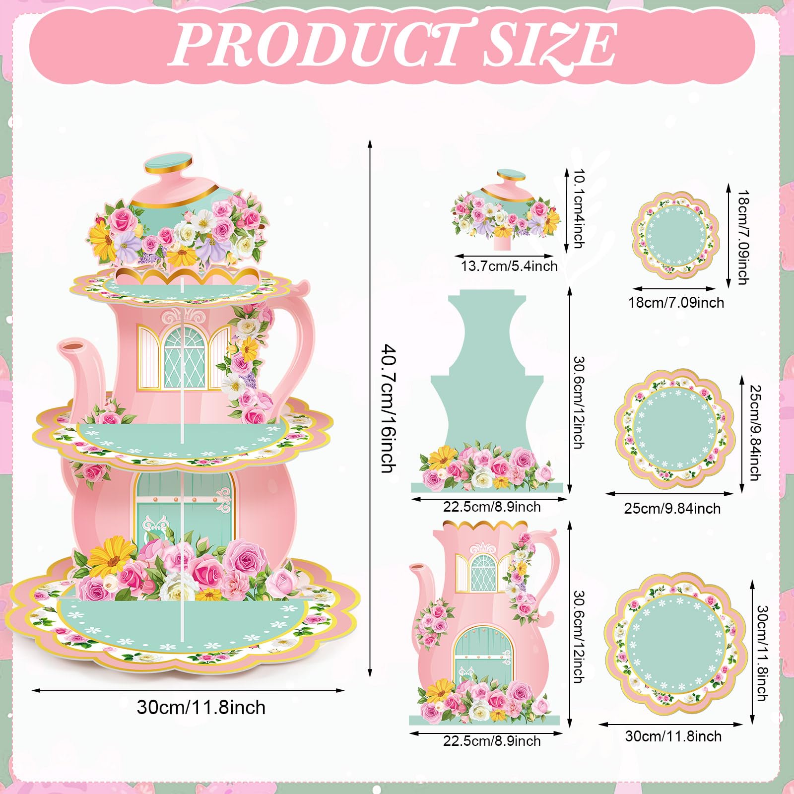 Flower Tea Party Design: our floral tea party cupcake stand is designed with flower pattern and teapot shape, mainly in vibrant green and pink, and there are many flower shapes, full of elegance and charm, delicate and vintage, which adds an active atmosphere for your floral tea party, and brings surprise and joy to your party