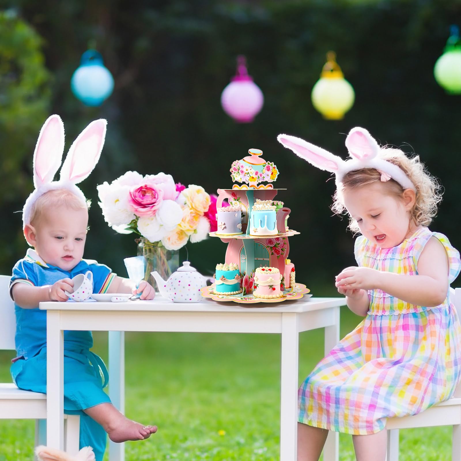Quality Material: tea party cupcake stand holder is made of quality sturdy cardboard with a 3 tier design, a stable structure, strong and sturdy, not easy to bend or deform, which can provide sturdy support for your cupcakes, can serve you for a long time, ideal for your tea party