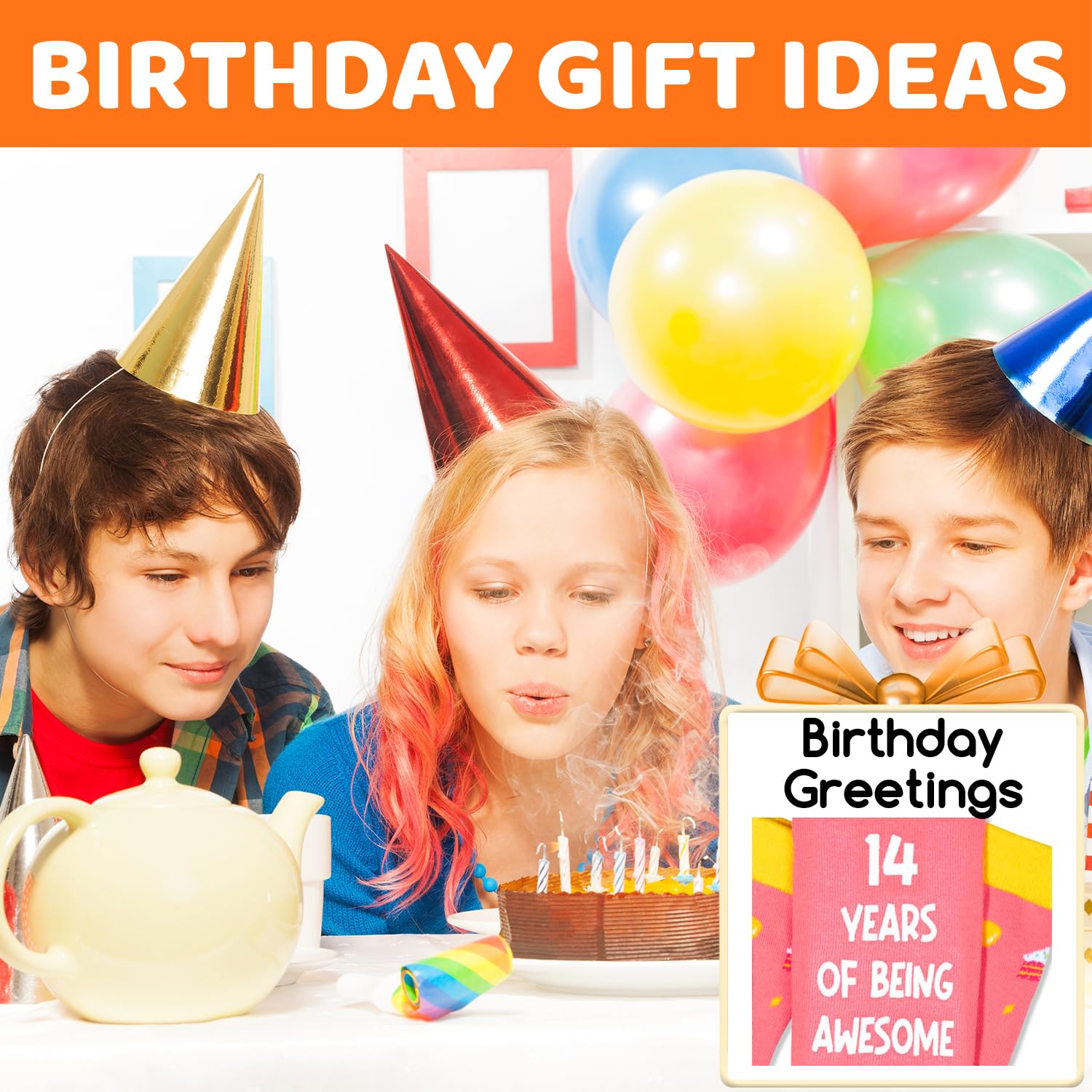 14 YEAR OLD GIRL GIFT IDEAS: These pink "HAPPY BIRTHDAY TO ME, 14 YEARS OF BEING AWESOME" socks are perfect for teen girls.