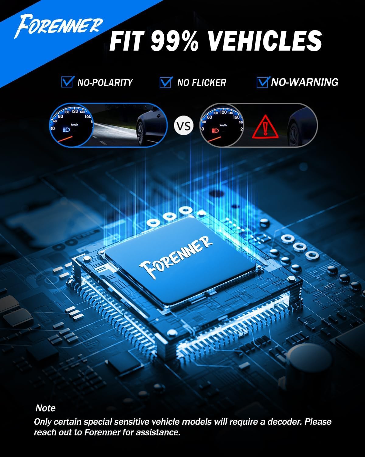【99% Compatibility – No Error Codes, No Hassle】Featuring an enhanced CANbus system and adaptive power output, these bulbs are compatible with 99% of vehicle systems. Most installs are seamless, though a few models may need a CANbus decoder. If needed, please contact us. FAHREN’s support team is always here to help.
