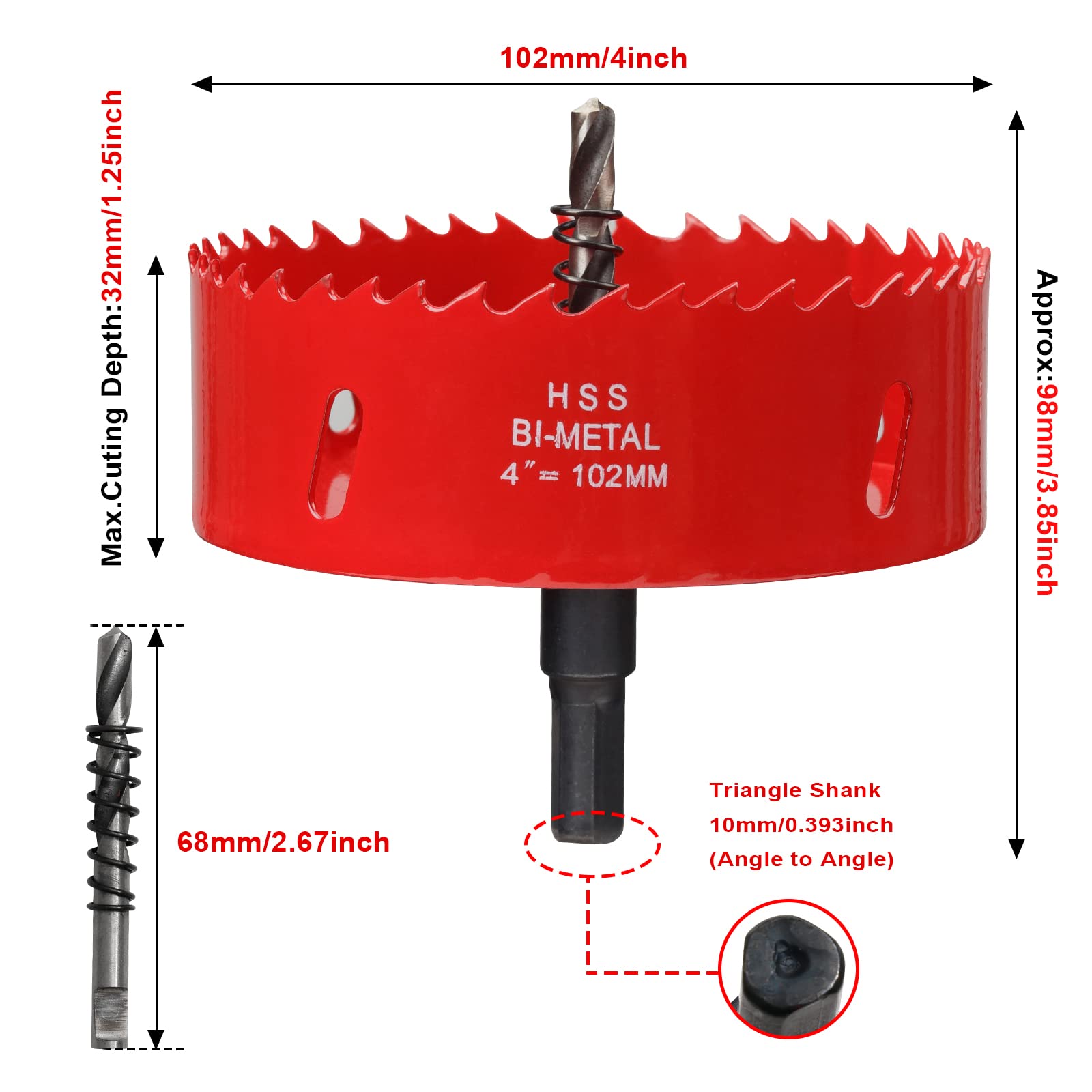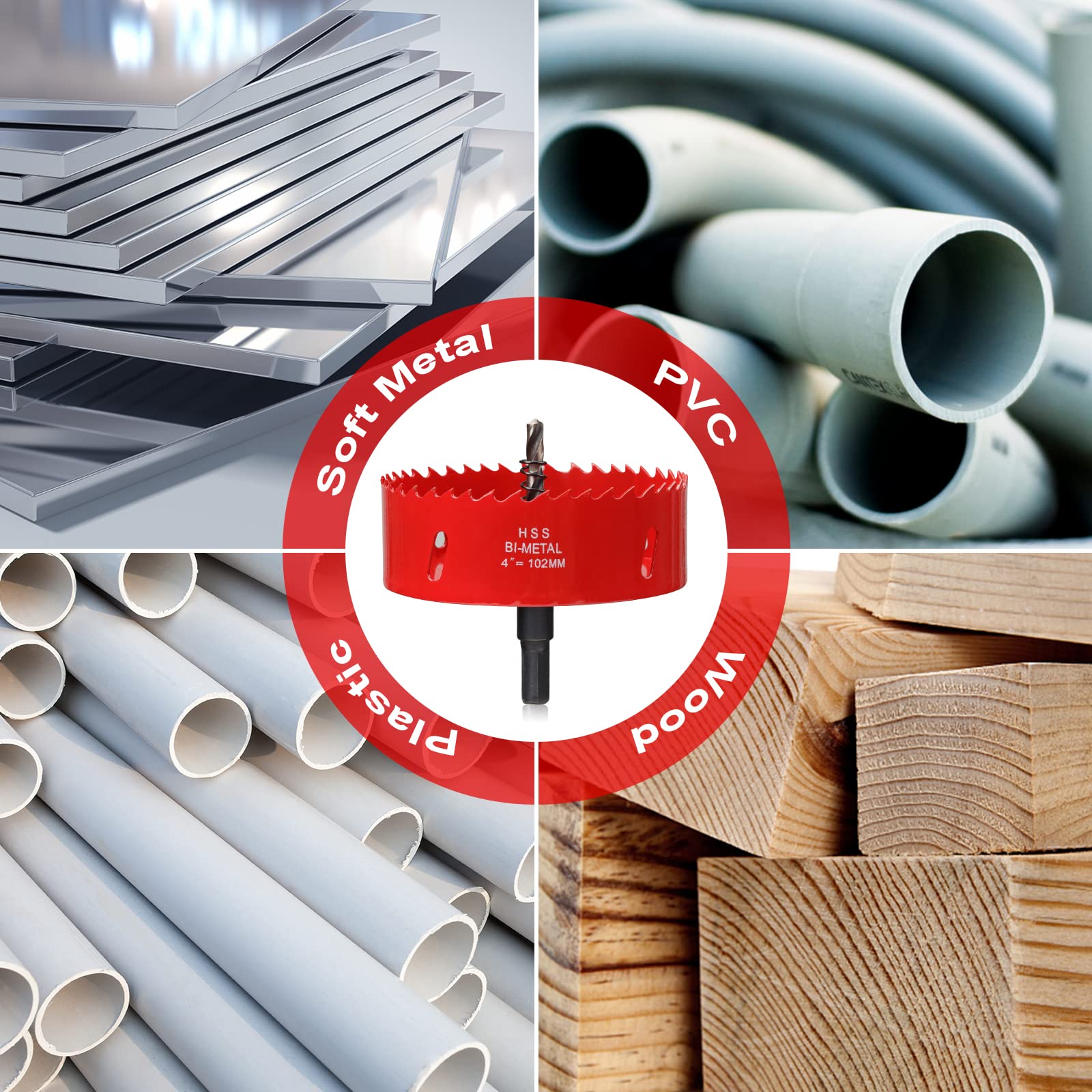 ITOOLFIRM HOLE SAWS for Wood, Ceiling, Vent Pipe and Drywall Features: BI-Metal + High Speed Steel(HSS) Extremely fast sawing with minimal expenditure of force High concentric and side-stroke precision ADVANTAGEs compare to other hole drills: They can cut holes with much larger diameters than traditional drill bits. much more EFFICIENT than a spade drill or twist drill. APPLIED TO CUT... Household wood Galvanized pipe Fire hose Gypsum board Holes in Ceiling for lights Holes for vent or fans Holes in table or wall for cable Cornhole COMPATIBLE DEVICE Pistol drill bench drill vertical drill press Precondition: drill chuck is required COMPATIBLE MATERIAL Wood Plastic Aluminum Copper INSTRUCTIONS Pre-drill using light contact pressure. Continue drilling with minimal, even pressure. avoid oscillating while drilling. Allow hole saw to “air” when using with wood and wood alternatives. The saw comes to a complete stop on your material before pulling it away. DIFFERENCE : Due to manual measurement and production batch is not the same, the size, weight, color will get difference (within 1%) of the normal case.