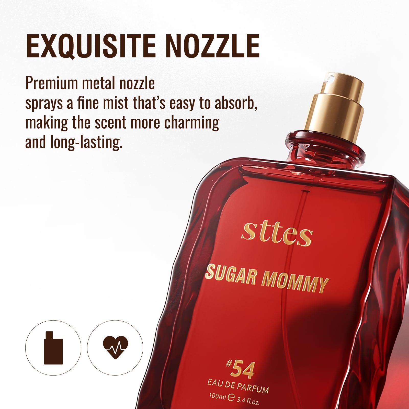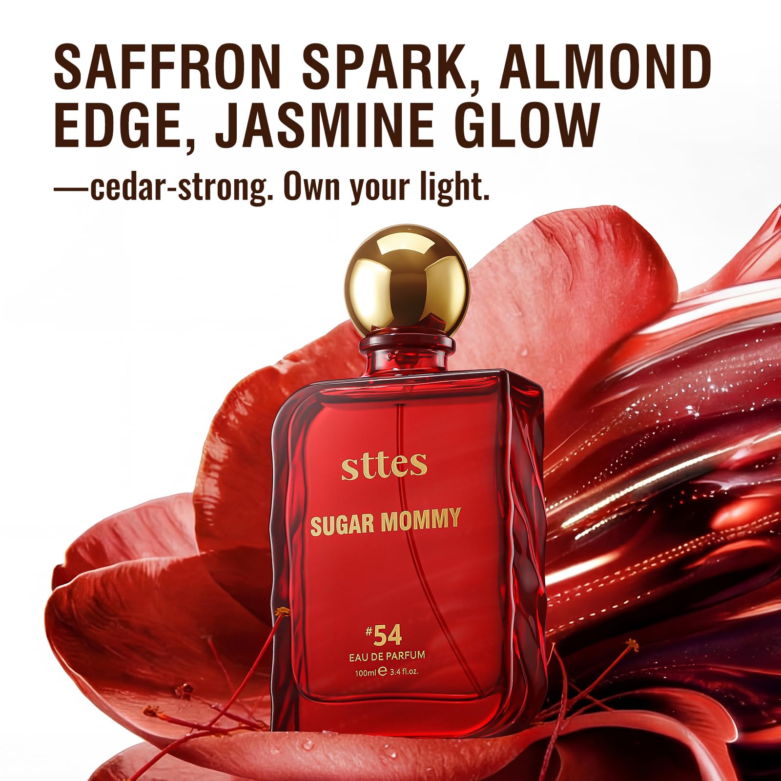 ✦ Sweet Gourmand Perfume for Women Sttes Sugar Mommy #54 is a warm and addictive gourmand fragrance that blends saffron, bitter almond and jasmine with soft sweetness. The scent feels playful, feminine and comforting while maintaining a refined perfume character.