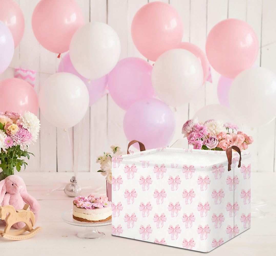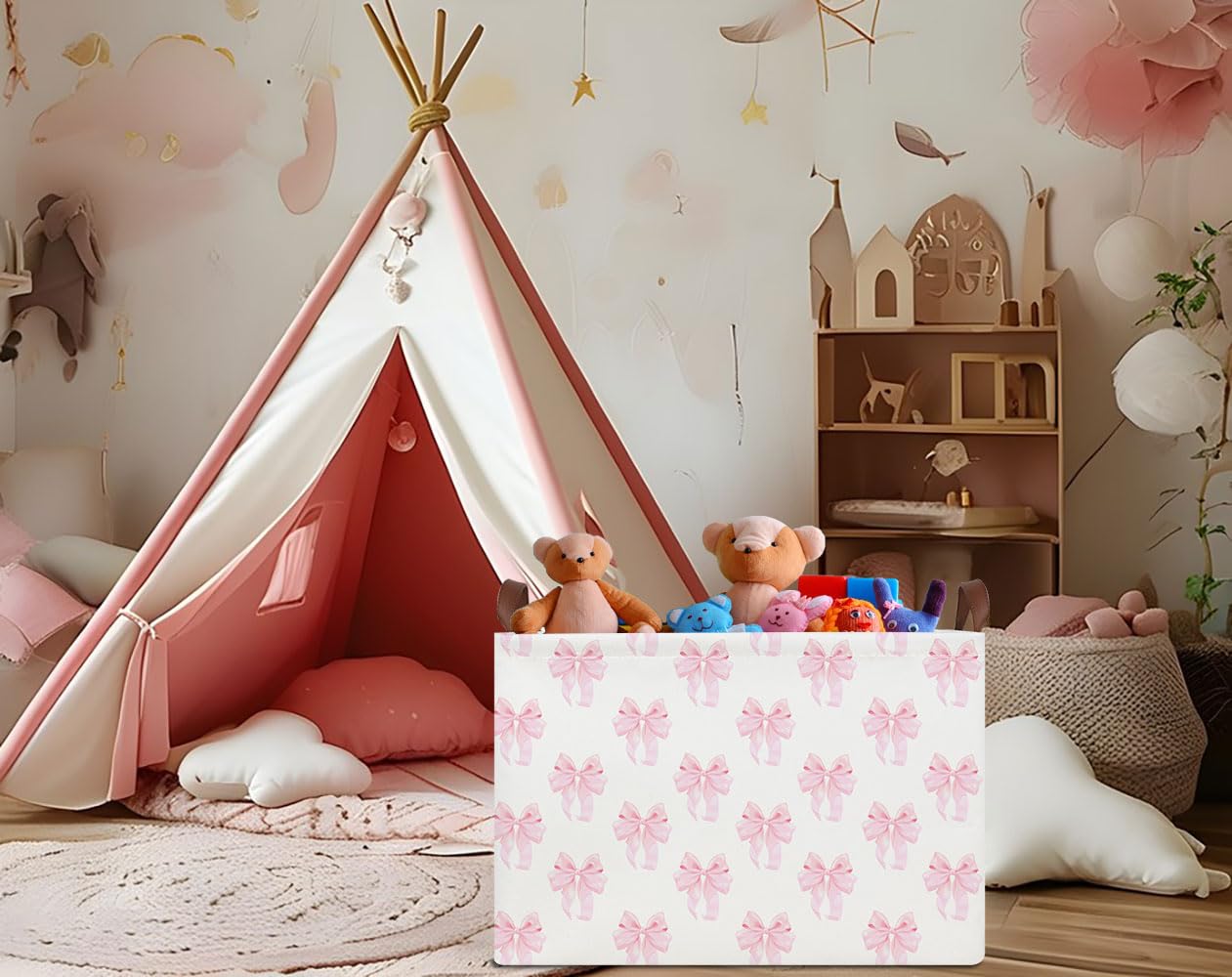 FOLDABLE BASKET SIZE: 14.9”L×10.2”W×9.8”H inches. Save on space when not in use and fold flat for easy storage, Perfect for gifts, books, clothes, games, doll accessories, or match-box cars.