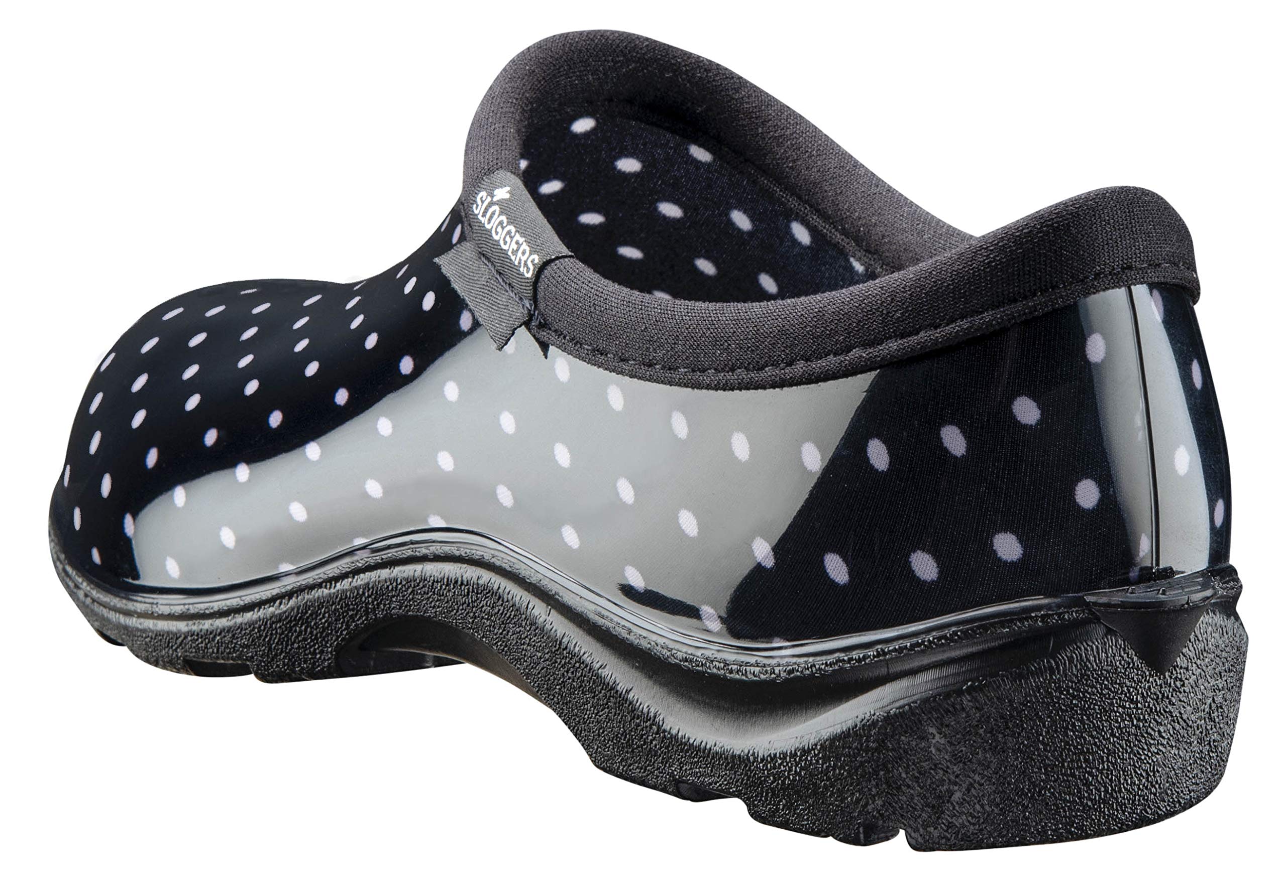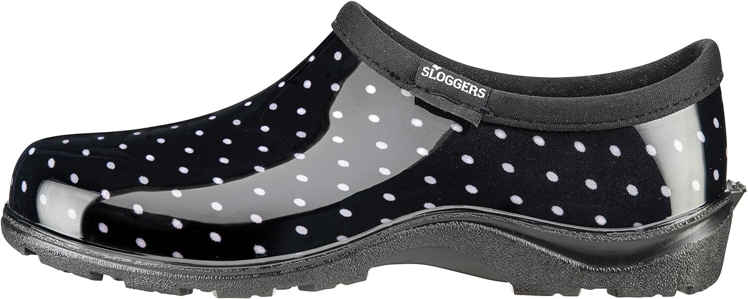 Description Product Description Designed with a honeycomb heel section that not only reduces weight, but also adds a spring to your step. Sloggers clogs, shoes, ankle boots and rain boots come with “All-Day Comfort” premium insoles to keep your feet supported all day. Sloggers signature deep lug tread provides the same stability and support as a real work boot. Made with 90% recycled material. Sloggers are easy to care for and clean. Hose them off or wash off in the sink. Remove insole to airdry. Amazon.com Cultivate all the enjoyment you can from your garden in the Midsummer garden shoe from Sloggers. Brilliant floral design meets mud- and puddle-proof construction so you can get out there after a refreshing spring shower and stay decidedly un-soggy. A low-cut ankle offers range of motion for easier kneeling and squatting as you work the soil. From the Manufacturer Women's Garden Shoe Midsummer, 6, (Black), Ea.