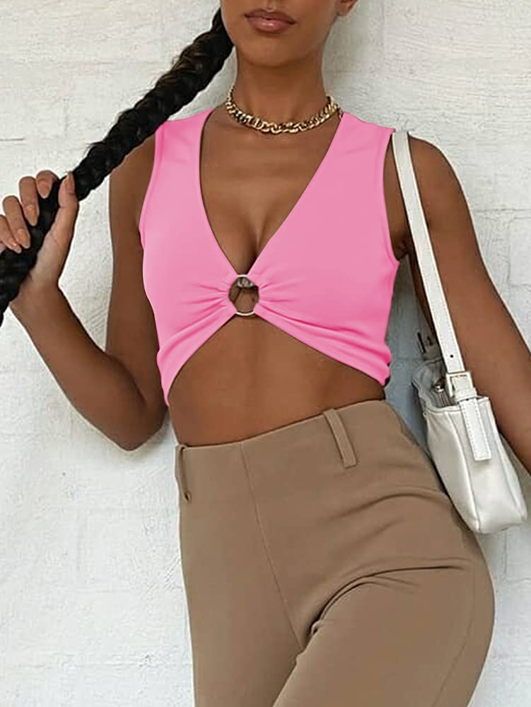 Design of the deep v neck and the silver ring center piece keeps the y2k top away from the ordinary. This cute tops can go well with jeans, shorts and high heels well