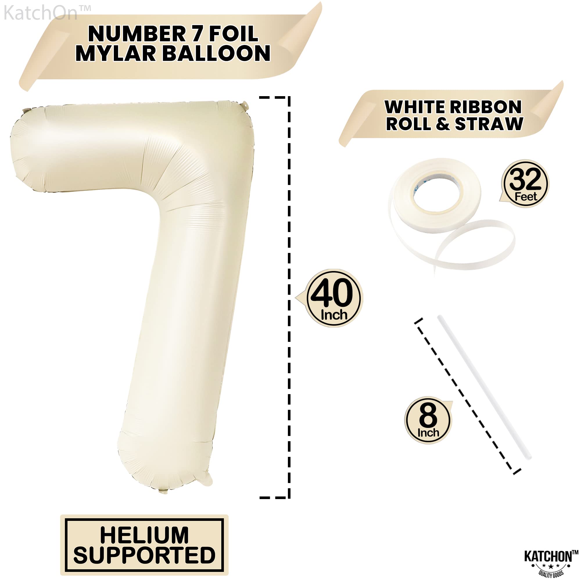 GIANT SIZE - 40 INCH | BEAUTIFUL CREAM WHITE BIRTHDAY BALLOONS - This Cream white number 7 balloon 40 inch is the party complement you shouldn’t miss. Add a great impact to your decoration with this giant Number 7 Cream Mylar Foil Balloon, Comes with 1 White Ribbon and 1 Straw to Inflate balloon. Pair this 7 balloon number with other number balloons to create double digits for your birthday or anniversary decorations. Perfect for boys, and girls birthday party decorations 7 years old.