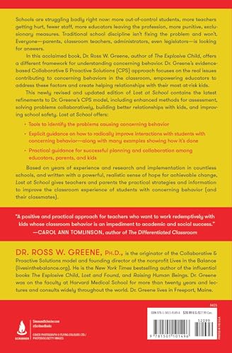From the renowned authority on education and parenting, “an in-depth approach to aid parents and teachers to work together with behaviorally challenging students” (Publishers Weekly)—now revised and updated. School discipline is broken. Too often, the kids who need our help the most are viewed as disrespectful, out of control, and beyond help, and are often the recipients of our most ineffective, most punitive interventions like detention, suspension, and expulsion. These students—and their parents, teachers, and administrators—are frustrated and desperate for answers. Dr. Ross W. Greene, author of the acclaimed book The Explosive Child, offers educators and parents a different framework for understanding challenging behavior in neurodiverse children. Dr. Greene’s Collaborative & Proactive Solutions (CPS) approach helps adults focus on the true factors contributing to challenging classroom behaviors, empowering educators to address these factors and create helping relationships with their most at-risk kids through collaborative problem solving and proactive solutions. This revised and updated edition of Lost at School contains the latest refinements to Dr. Greene’s CPS model, including enhanced methods for solving problems collaboratively, improving communication, and building relationships with kids to reduce school behavior problems. Dr. Greene’s lively, compelling narrative includes: • Tools to identify the problems and lagging skills causing challenging behavior and support emotional regulation • Explicit guidance on how to radically improve interactions with challenging kids and reduce challenging episodes—along with many examples showing how it’s done using de-escalation strategies • Practical guidance for successful planning and collaboration among educators, parents, and kids including IEP and behavior intervention planning Backed by years of experience and research and written with a powerful sense of hope and achievable change, Lost at School gives teachers and parents the realistic strategies and information to impact the classroom experience of every challenging kid (and their classmates) without relying on punishment-based discipline.