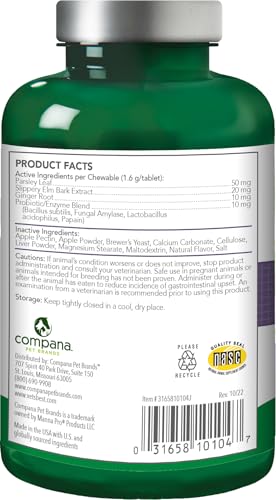 CHEWABLE CONVENIENCE: Chewable tablets are densely packed with active, natural ingredients to support your dog’s digestion; Easy to administer twice daily as directed, they make giving digestive relief simple & enjoyable with no stress for you & your dog