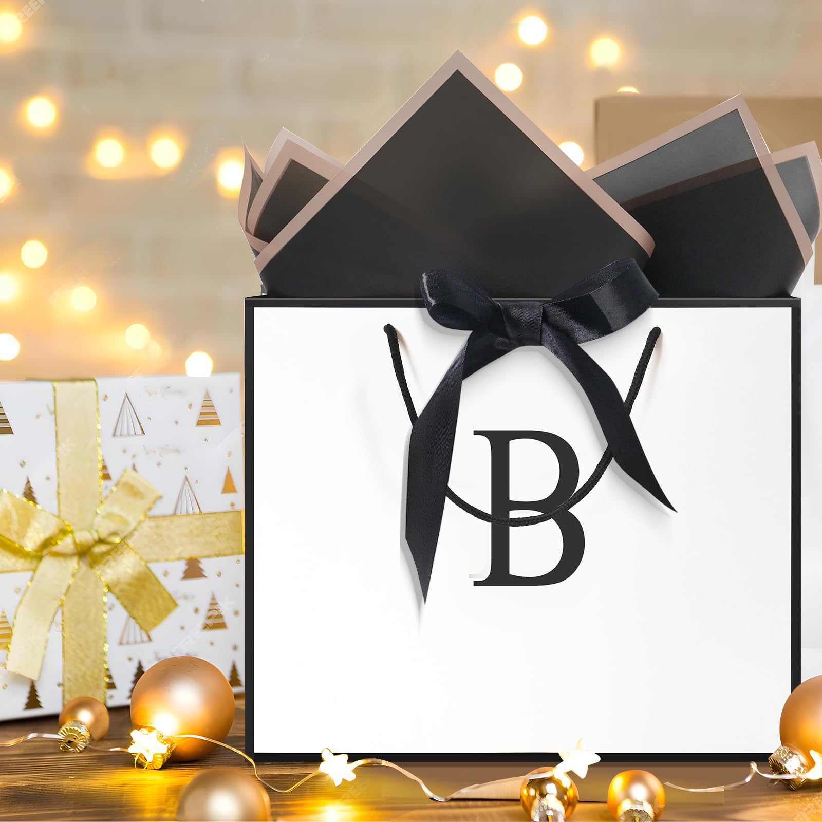 Monogrammed Gift Wrap Bag Personalized Initial Paper Bag with Card Matching Envelope Sticker,Bow Ribbon and Wrapping Tissue Birthday Gifts for Women Men